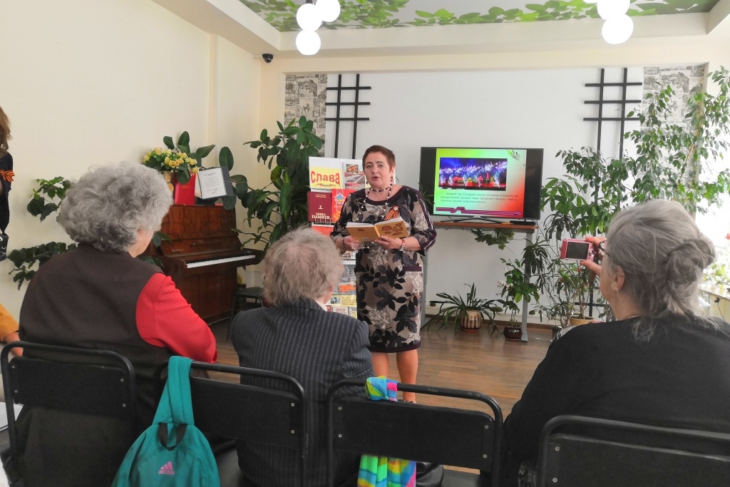 7 мая в библиотеке №12 состоялся час памяти «Великая Отечественная война в стихах и песнях». На этом мероприятии, посвященное песням военных лет, прозвучали песни в исполнении вокального ансамбля «Улыбка» Первомайского общества инвалидов.