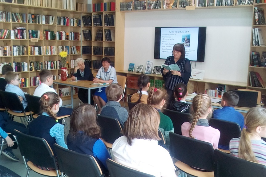 8 мая библиотека № 9 организовала для учащихся 2 «В» класса школы № 21 литературные чтения «Военные рассказы Анатолия Митяева», посвященные дню Победы и 95-летию писателя. Слушая рассказы и перечитывая понравившиеся эпизоды, дети понимали, как нужно любить свою Родину, как важно уметь защищать её от врага в трудную минуту.