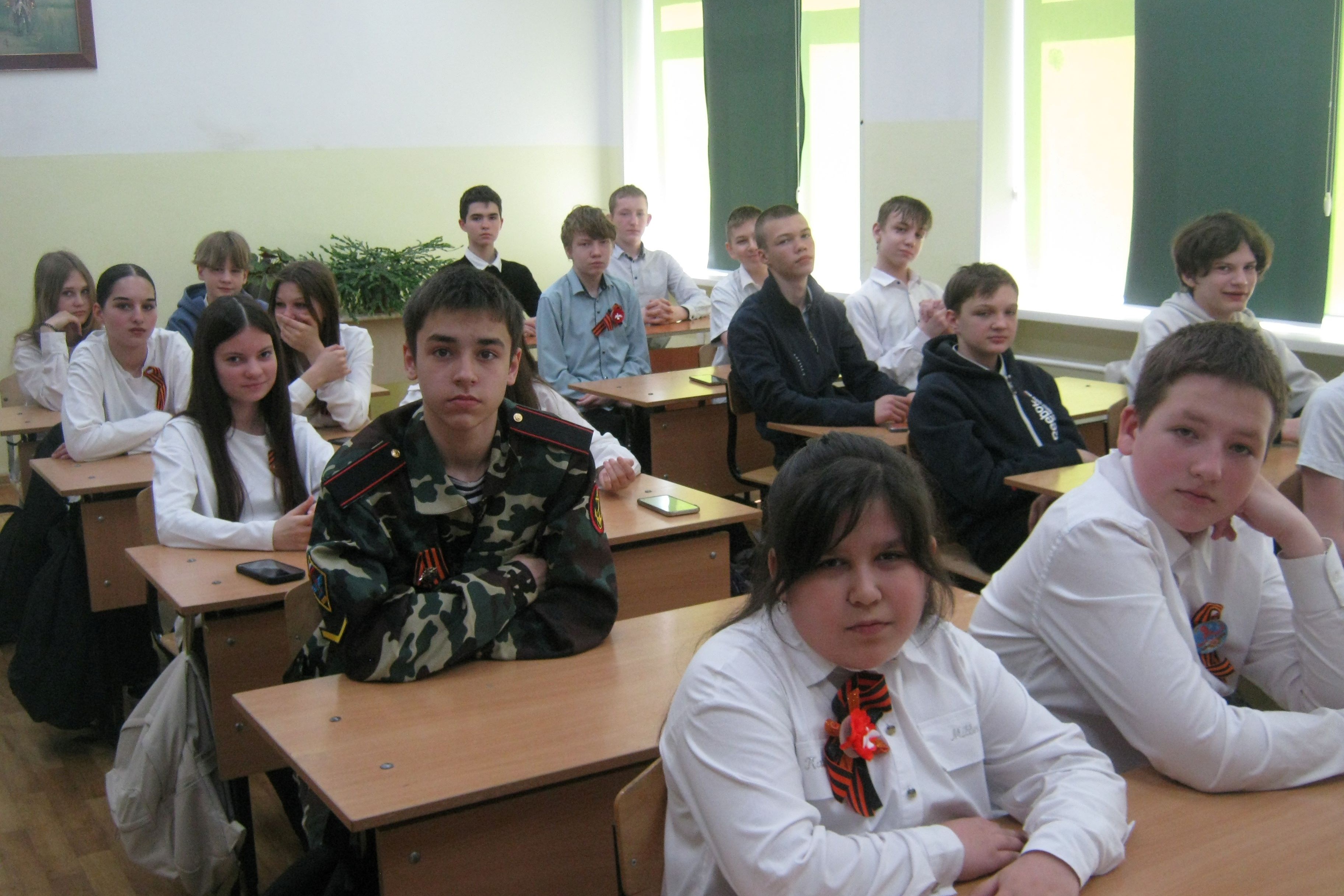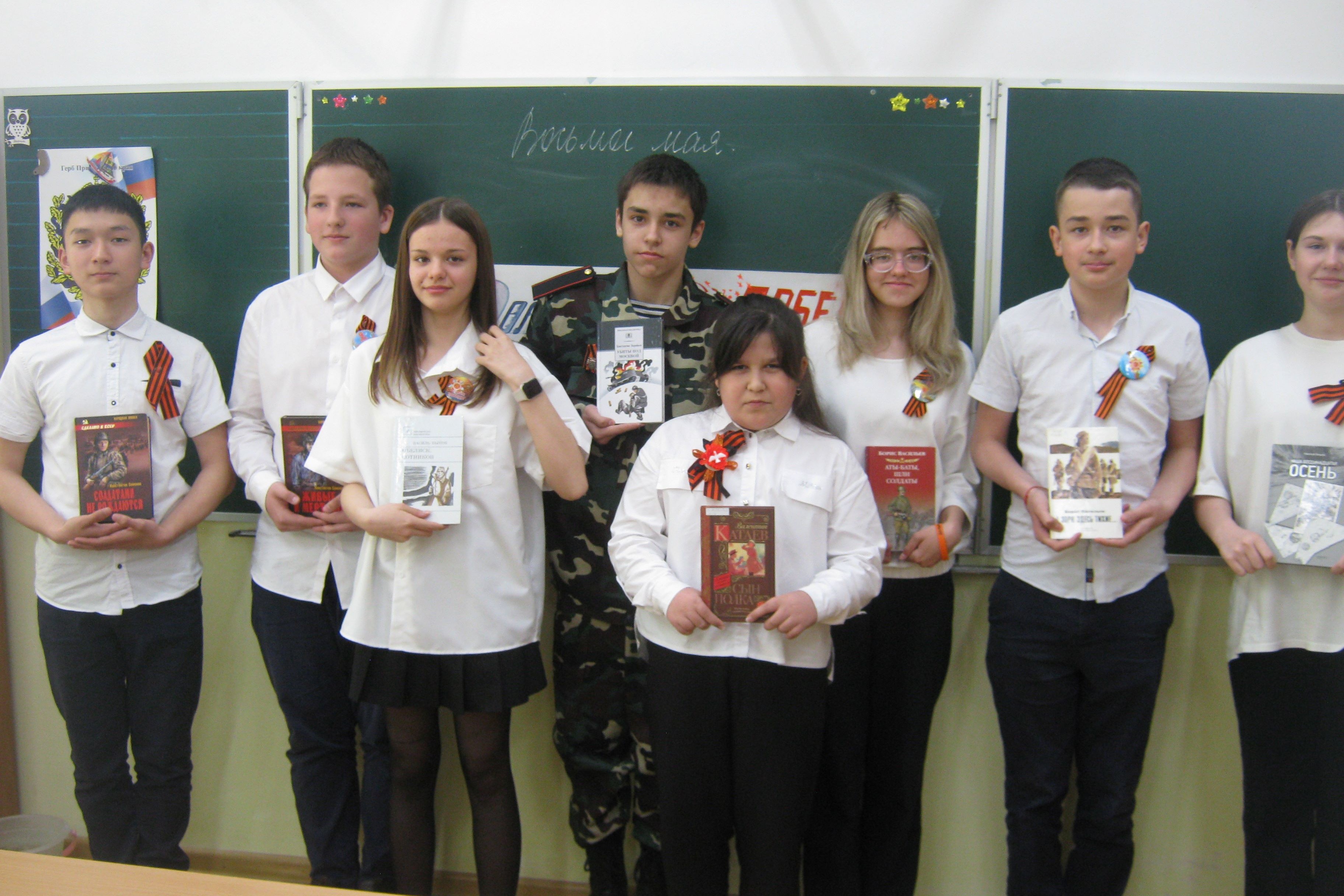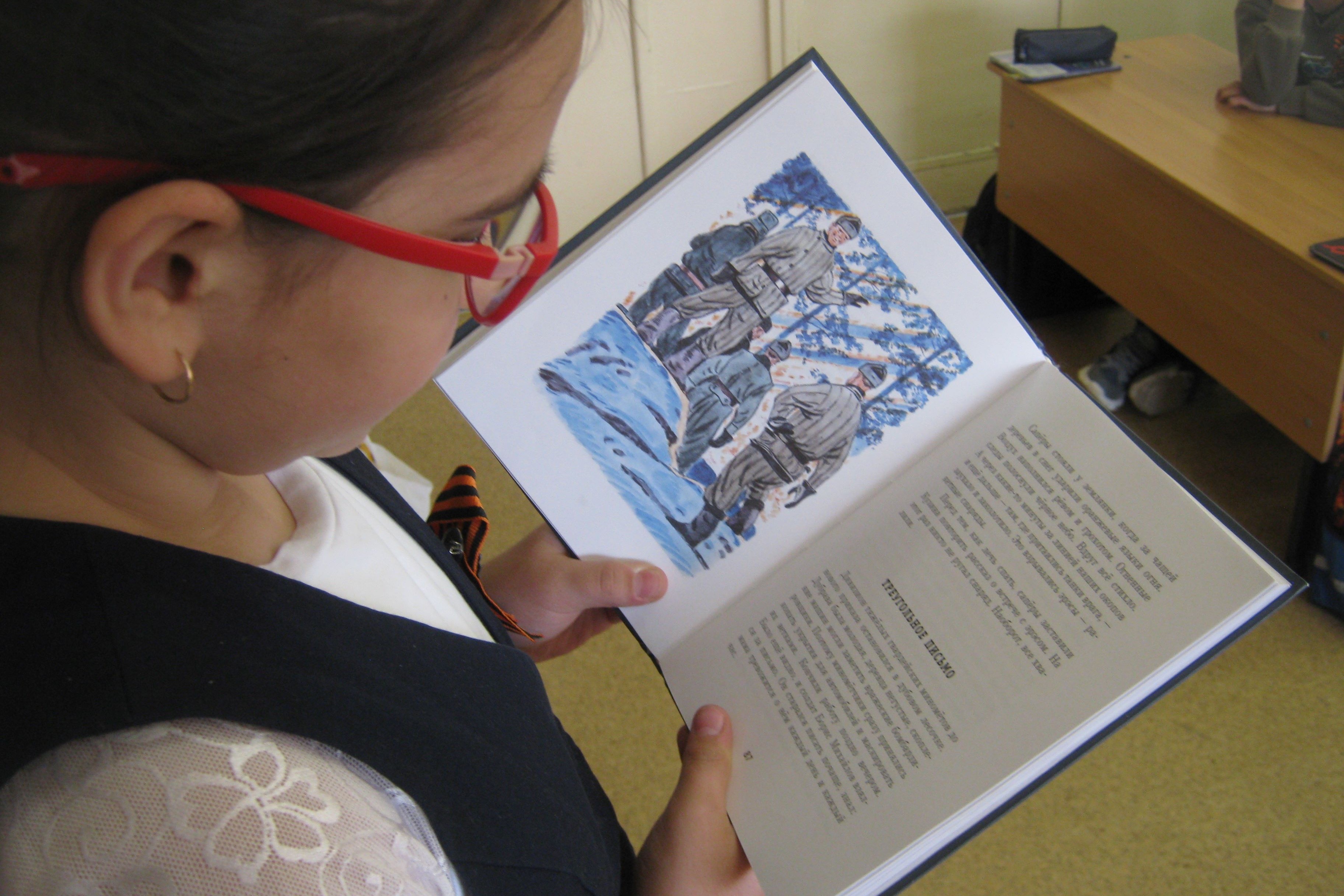 На уроке мужества третьеклассников познакомили с Анатолием Митяевым. Рассказы этого писателя «Землянка», «Самовар», «Куриная слепота» и др., в первую очередь прославляют простого русского солдата-красноармейца. Солдат готов ко всему от рытья окопов, скрытых разведок, долгого сидения в окопах и стремительных атак. Детям понравились герои книг, но еще они рассказали и о своих семейных героях, которые погибли, но память о них жива. В письмах, бережно хранимых, в фотографиях, что хранятся в альбомах и даже в песнях, что поются в День Победы.