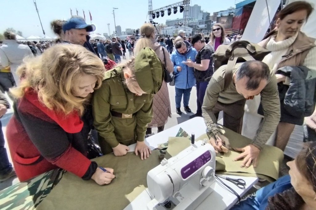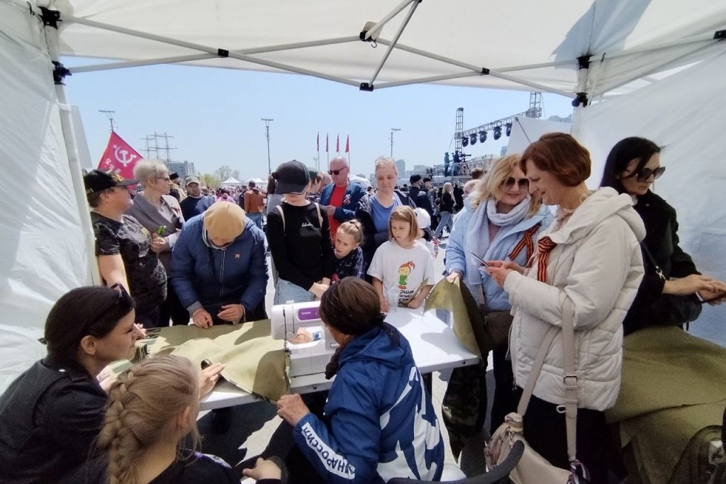 9 мая на Центральной площади города Владивостока по приглашению Местного отделения Партии «Единая Россия» Владивостокского городского округа библиотека приняла участие в праздничной программе Дня Победы. Были организованы мастер-классы по изготовлению брошей из георгиевских лент, а также бандан для бойцов, находящихся в зоне специальной военной операции. Сотни людей откликнулись на призыв и сшили прямо на площадке праздника банданы. Люди разных поколений писали на ткани теплые слова поддержки ребятам, пожелания возвращения домой с победой. На днях посылки отправятся на передовую.