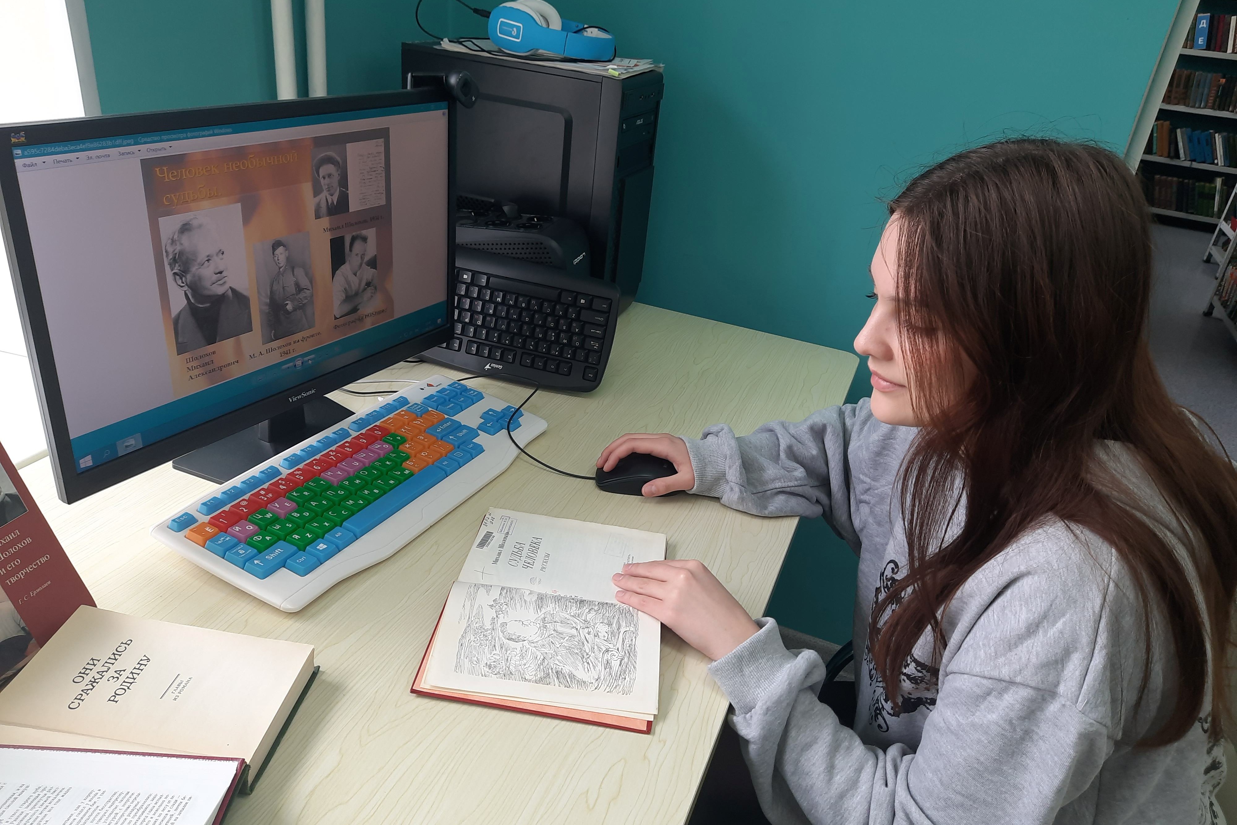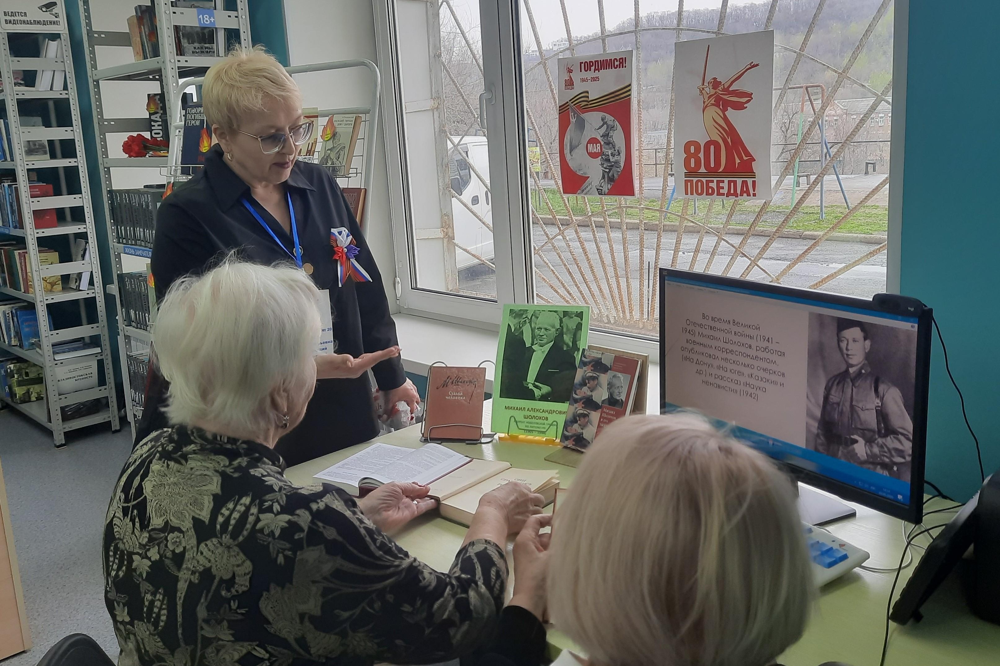 3 мая библиотекарь библиотеки № 20 провела обзоры «Военными дорогами вслед за Шолоховым», приуроченную к 120-летию со Дня рождения выдающегося советского писателя М.А. Шолохова (1905-1984) и к празднованию 80 — й годовщины Победы (Акция «Победный май». 9 мая-День Победы). На тематической выставке представлены произведения М. Шолохова, а также материал о жизни и творчестве выдающегося советского писателя.