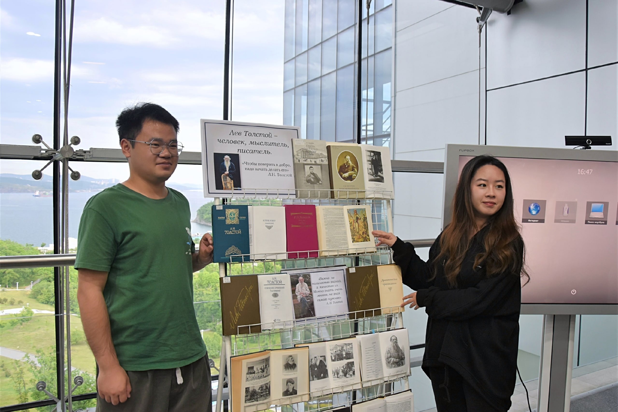 5 июня библиотека № 21 посетила гуманитарный зал научной библиотеки ДВФУ для проведения очередного лектория, посвященного Льву Николаевичу Толстому. В этот раз аудиторию составляли иностранные магистранты-филологи из Китая и первокурсники-лингвисты из Южной Кореи.