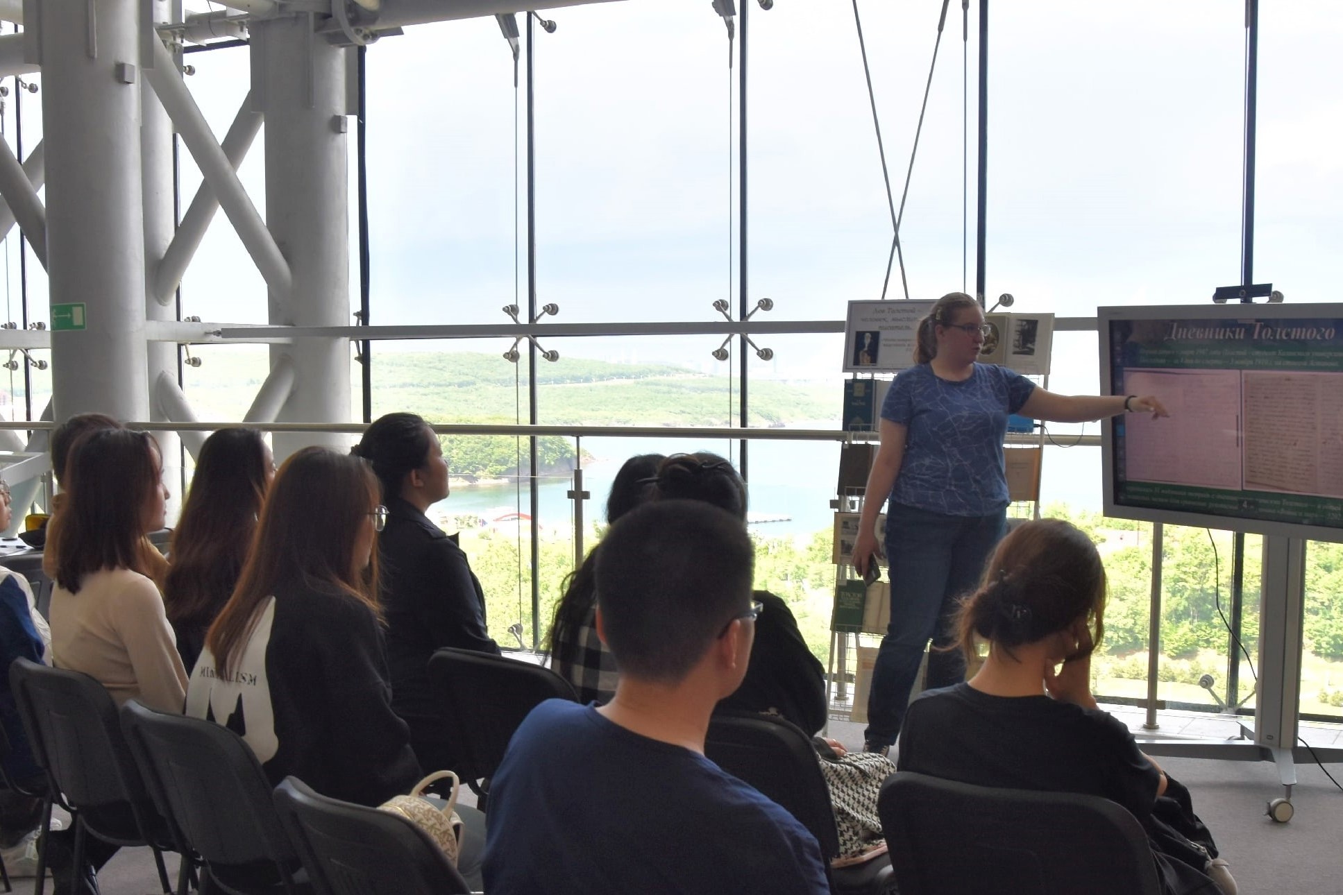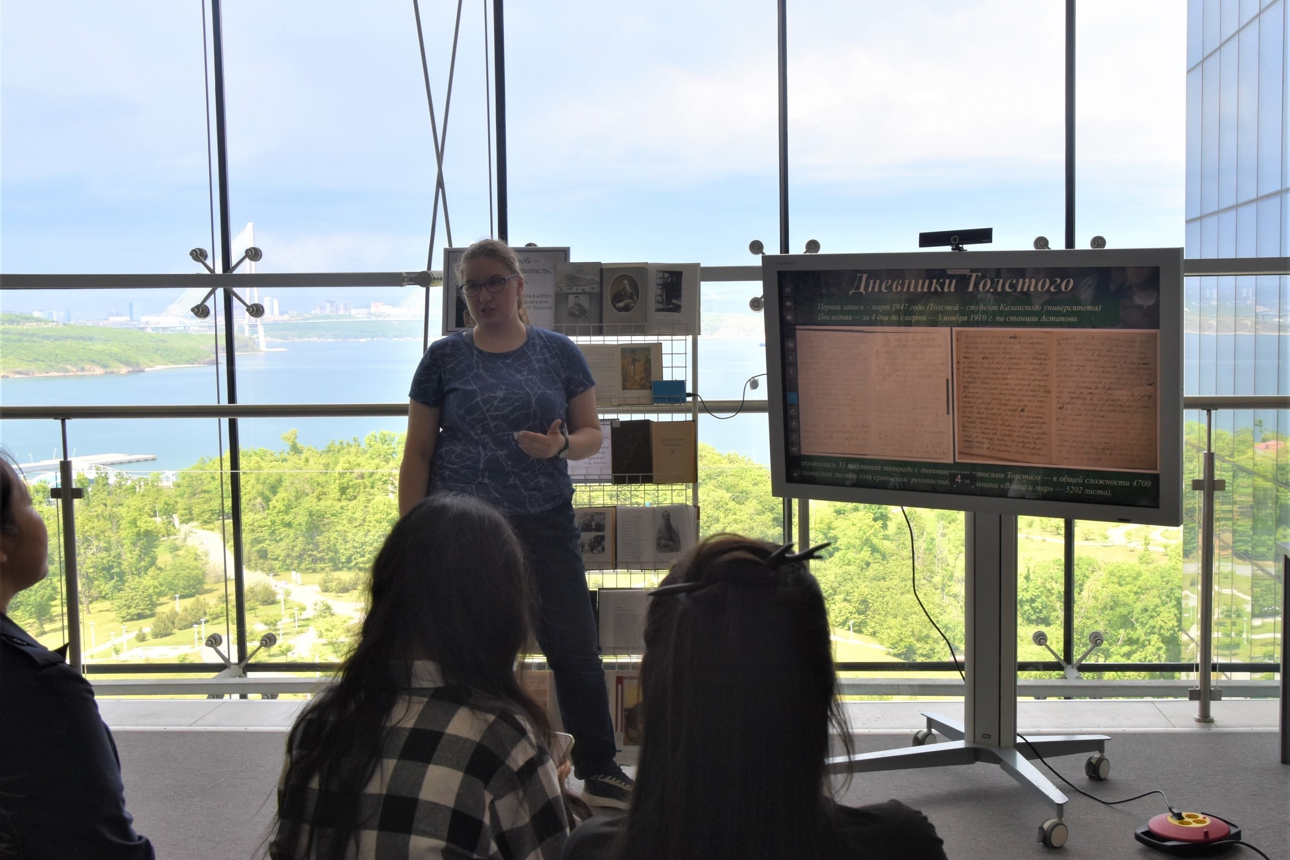 5 июня библиотека № 21 посетила гуманитарный зал научной библиотеки ДВФУ для проведения очередного лектория, посвященного Льву Николаевичу Толстому. В этот раз аудиторию составляли иностранные магистранты-филологи из Китая и первокурсники-лингвисты из Южной Кореи.