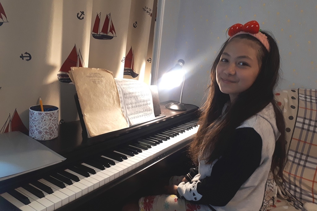 Участникам онлайн студии предлагалось написать небольшое эссе о своём хобби и проиллюстрировать его. Лена Лю, ученица школы № 57 города Владивостока, в небольшом эссе рассказала о своих увлечения музыкой: «В восемь лет я пошла на музыкальное отделение. Вначале у меня не было инструмента, но к середине первого класса музыкальной школы у меня появилось первое деревянное фортепьяно.