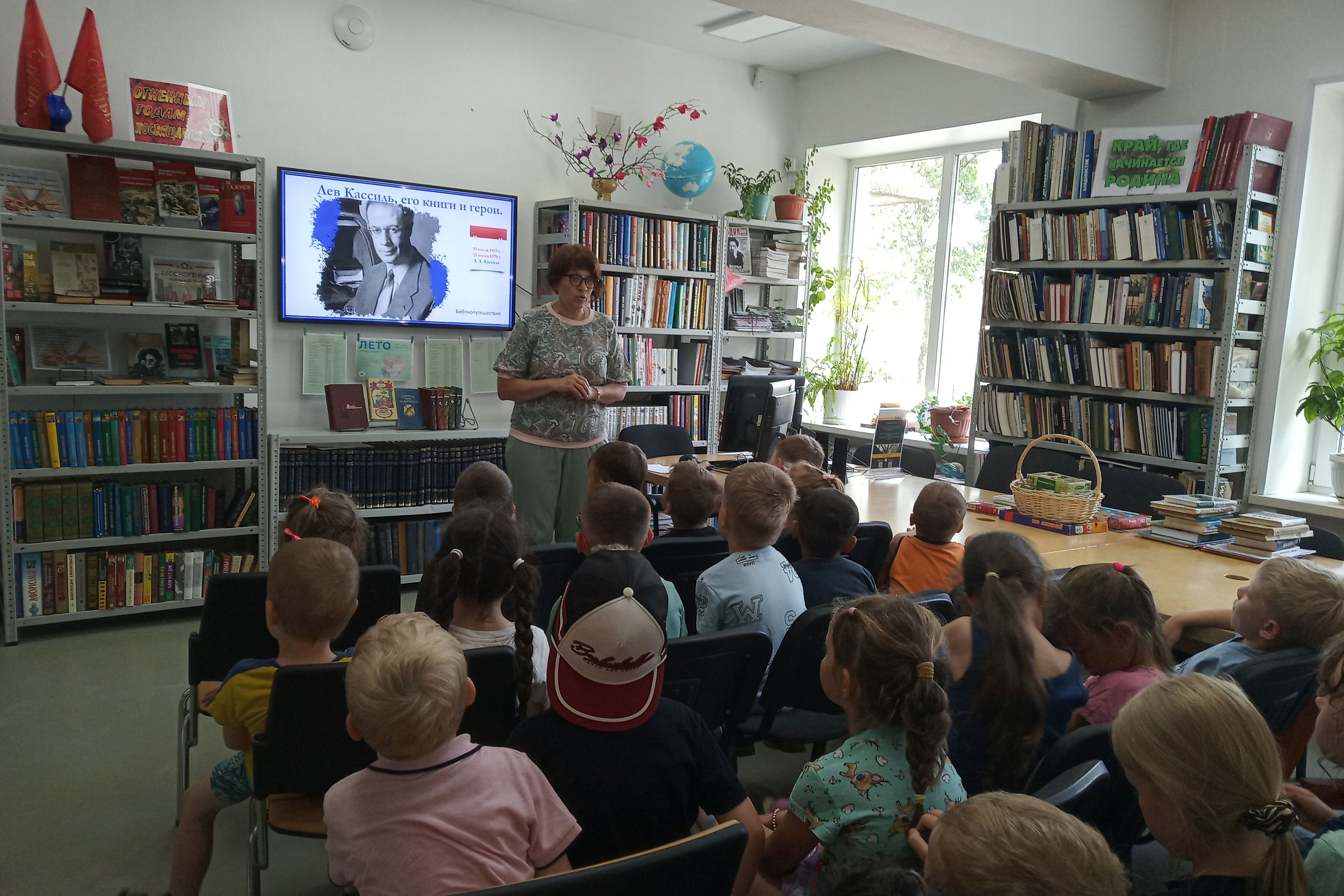 Библиопутешествие библиотека № 16 (ул. Котельникова, 20) провела с воспитанниками ДОУ № 68. На литературной встрече «Лев Кассиль, его книги и герои» дети познакомились с жизнью и творчеством замечательного детского писателя Льва Абрамовича Кассиля. Его детские мечты были вполне мальчишечьи, он хотел быть извозчиком, кораблестроителем пароходов типа «Самолет», натуралистом. Повзрослев, решил заняться наукой, но окончив три курса физико-математического факультета МГУ, осознал, что его привлекает журналистика. Так Лев Кассиль стал репортером. Служил корреспондентом в разных газетах, а постоянные командировки, встречи давали ему богатый материал для творчества. Всю Отечественную войну прошагал с «лейкой и блокнотом».