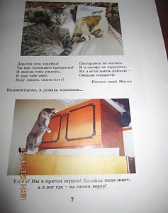 Если вы хотите всё узнать о моей жизни, я вас отправляю к книге моей хозяйки Наталье Евгеньевне Матяш «Жил-был кот». Библиотека им. И.У. Басаргина.