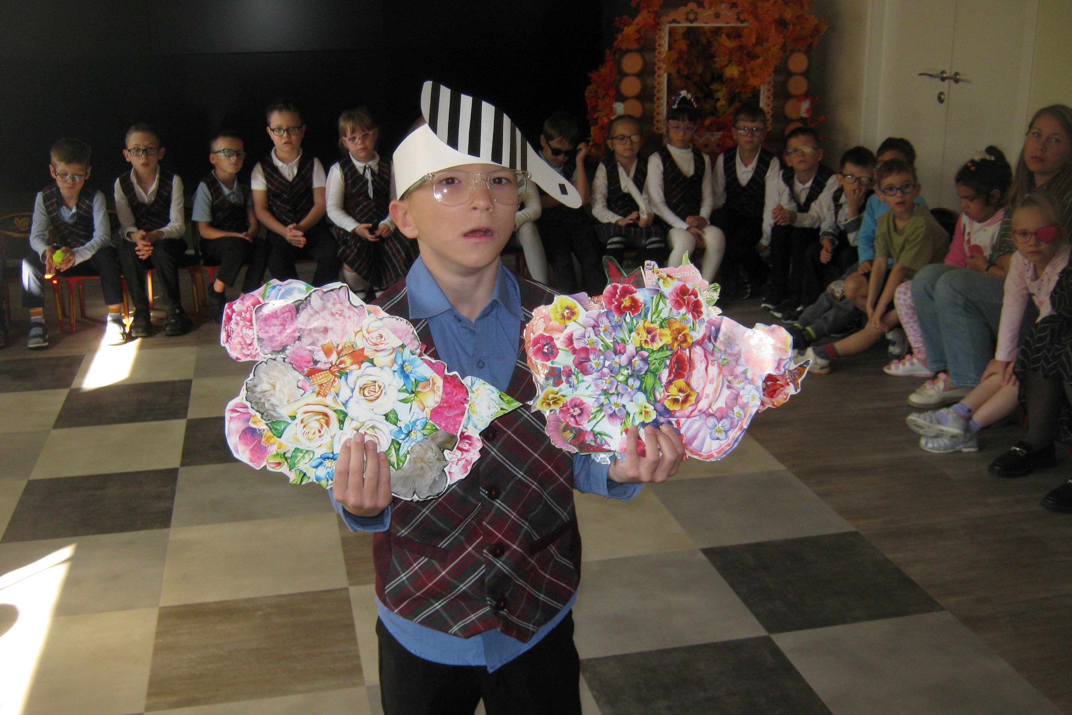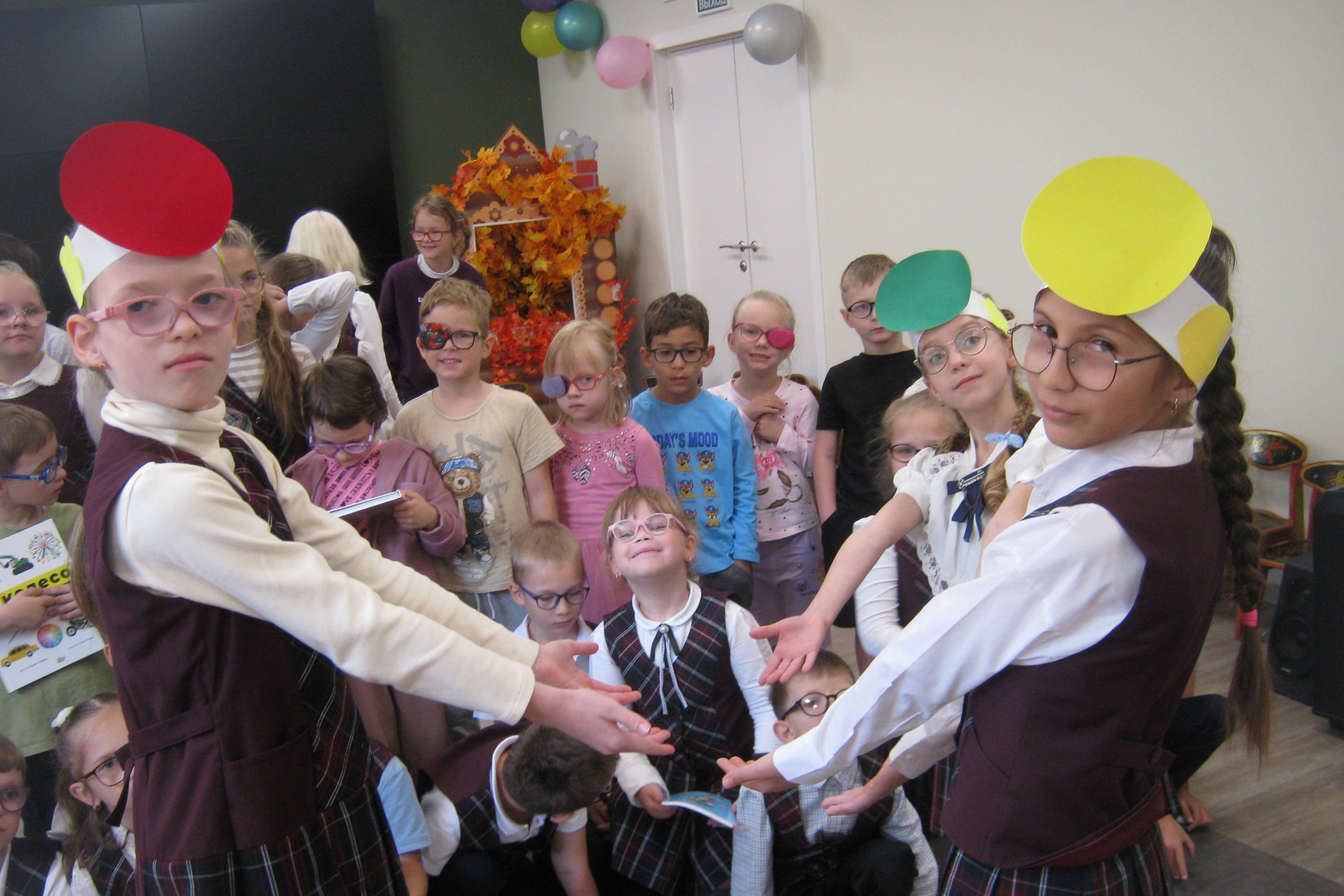 Вот об этом чуде трехглазом дети рассказали, и не просто так, а поставили мини спектакль «Городок Трехцветик». Это удивительная история, герои которой три сестры: Красноглазка, Желтоглазка, Зеленоглазка, а также коварный Магический жезл.