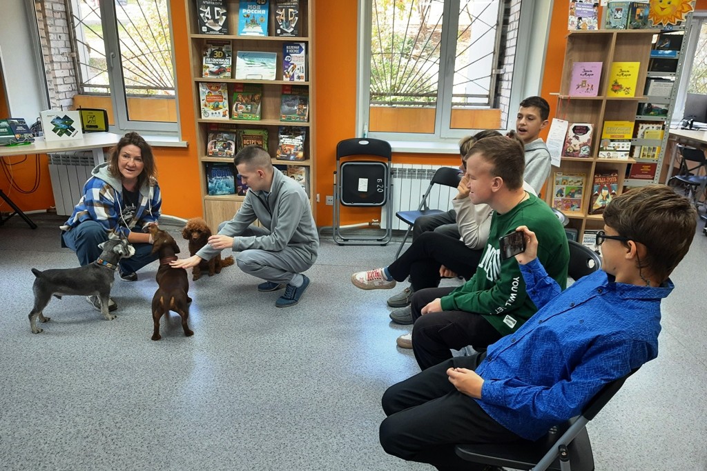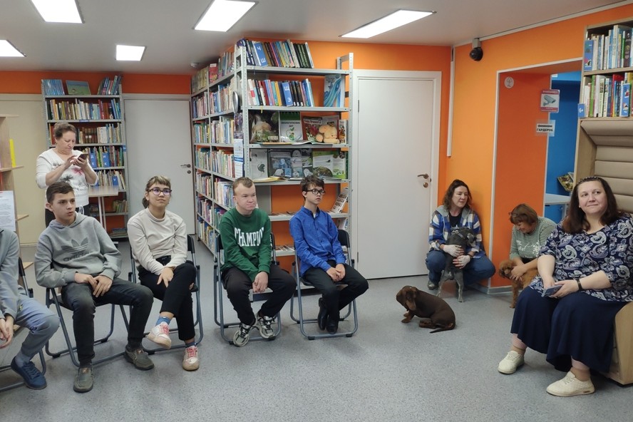 Стоит отметить, что модернизированная библиотека № 20 на Заре также является партнером социального проекта «Школа ответственного собаковода (ШОС)», на базе библиотеки неоднократно проходили встречи в формате Круглого стола «Канистерапия» (встреча профильных специалистов), на которых специалисты помогающих профессий — кинологи, зоопсихологи, работники социальной сферы как раз и рассматривали перспективы применения собак в педагогической, коррекционной, реабилитационной деятельности.