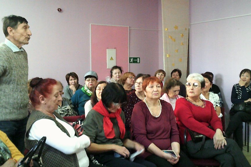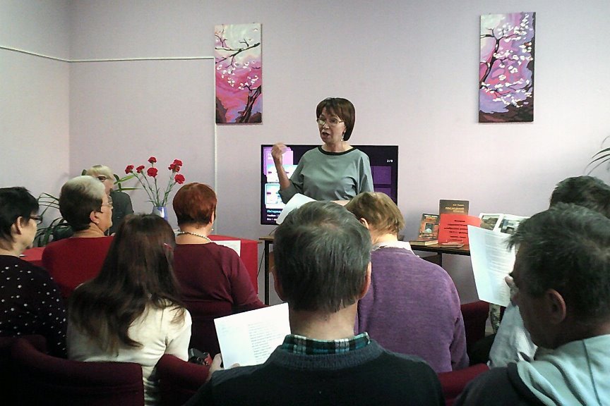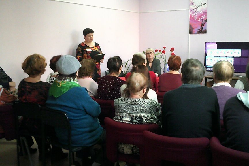 8 ноября в библиотеке №13 прошло торжественное собрание общества инвалидов Советского района г. Владивостока. Мероприятие было посвящено годовщине Великой Октябрьской социалистической революции, организовано в форме собрания со всей атрибутикой советского времени: красная скатерть на столе, красные гвоздики в вазе, председатель собрания и т.п. Гости библиотеки познакомились с электронной презентацией, посвященной установлению советской власти в Приморском крае, ответили на вопросы викторины о революционных событиях, вспомнили и исполнили несколько песен времен революции и гражданской войны, познакомились с книжной выставкой по теме. Мероприятие закончилось чаепитием.