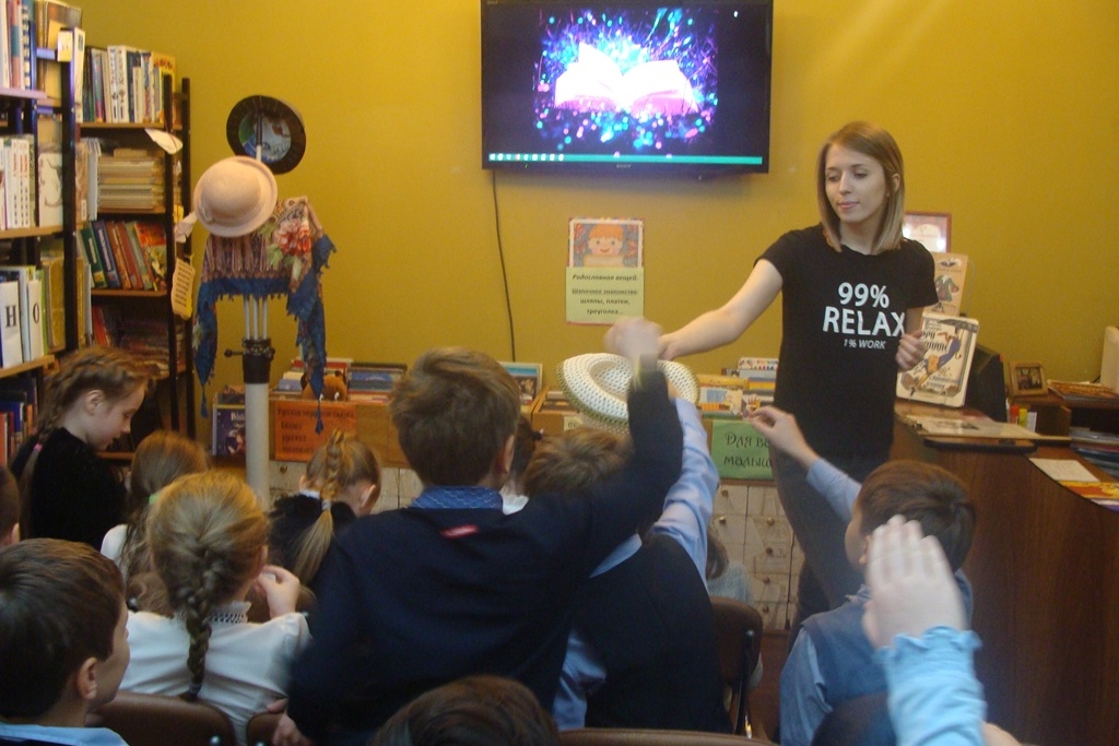 Была рассказана также история появления цилиндра и конечно все ребята вспомнили великого русского поэта А.С. Пушкина, чей образ не обходится без этого элегантного элемента одежды. Известно, что «шапокляк» — это складной цилиндр. А что же носили на Руси в столице и в слободе, в деревне? О боярских шапках и простом мужицком треухе, о картузе рассказали сотрудники библиотеки ребятам.