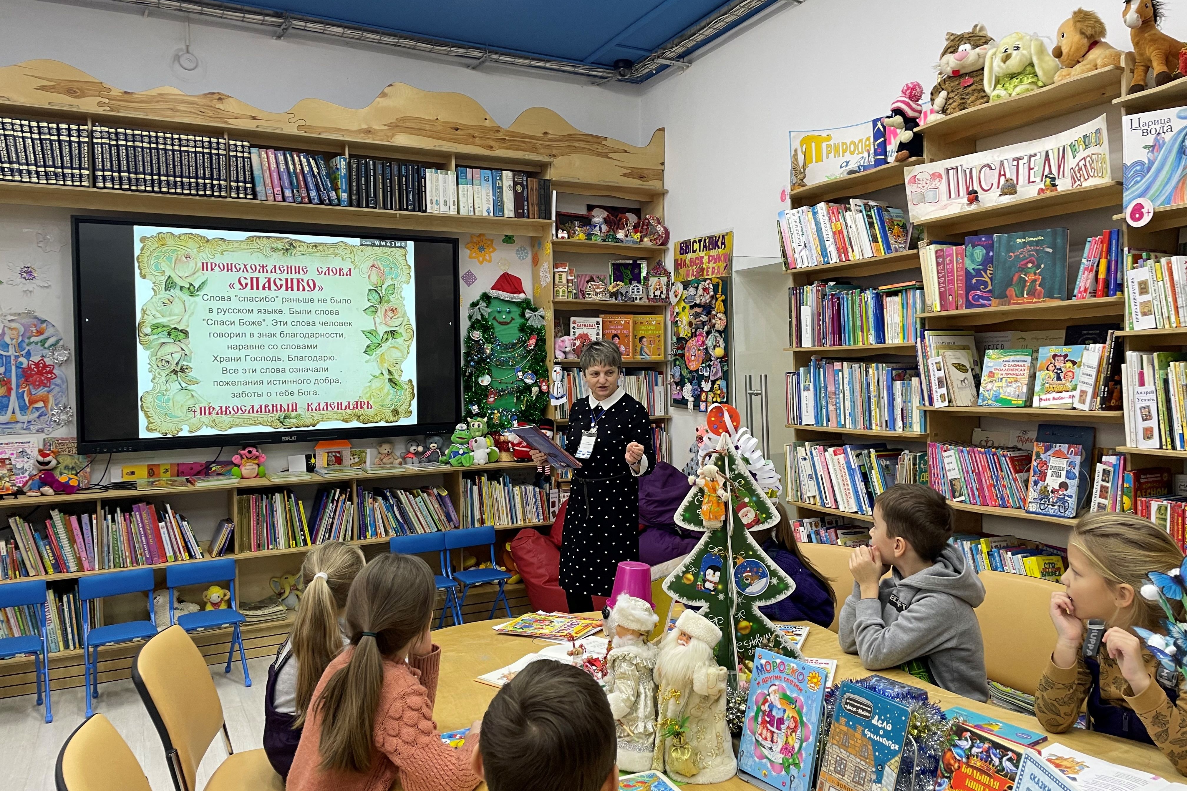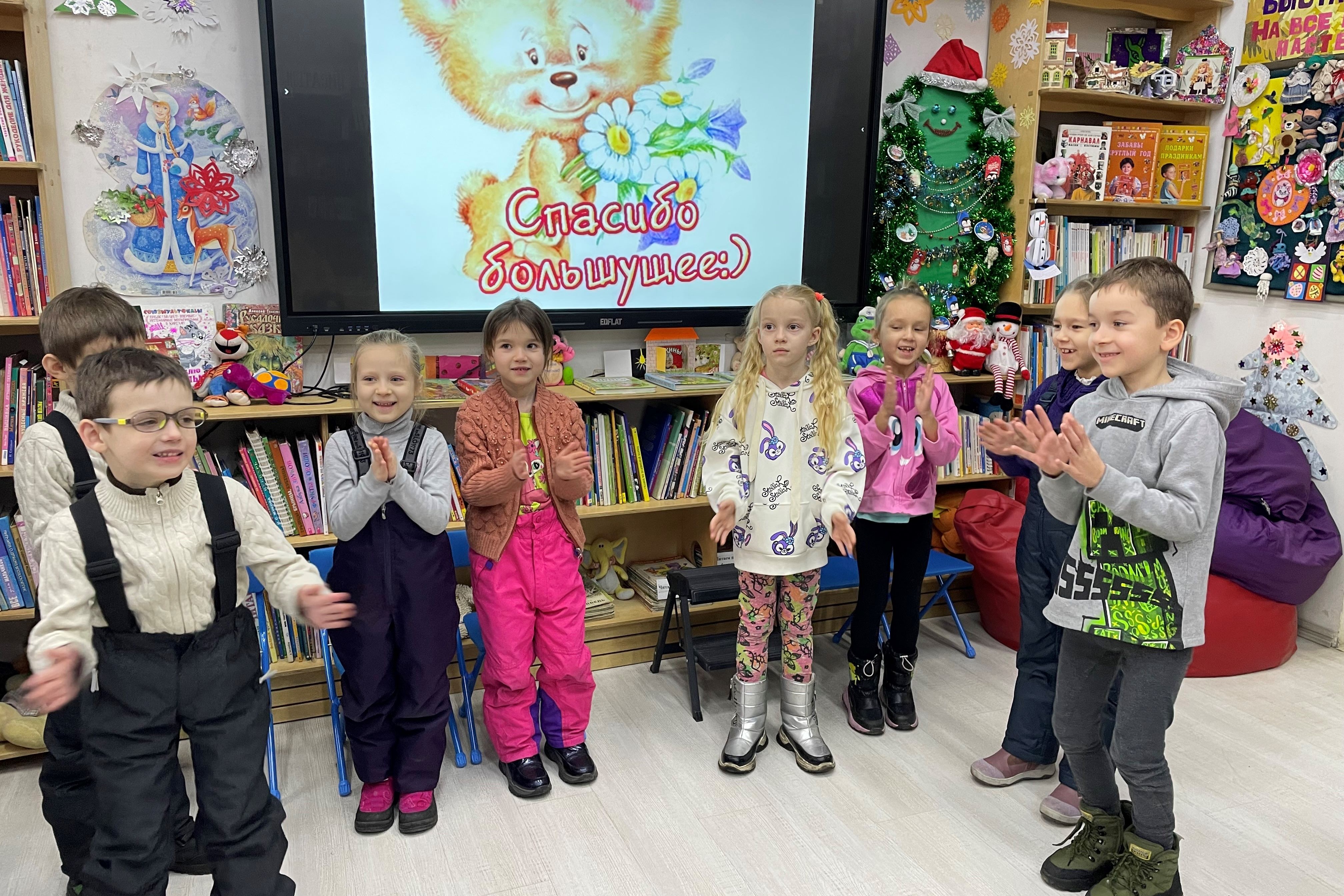 11 января воспитанники детского сада №163 отметили в детской библиотеке № 7 самый вежливый день в году – Международный день «спасибо». Они совершили увлекательное путешествие в волшебную страну вежливости. Но путь туда был нелегкий, а детям пришлось справиться со многими испытаниями. Вначале они должны были по очереди назвать добрые слова, потом слушали веселые стихи Леонида Яхнина про каждое вежливое слово, из презентации узнали, как же появилось слово «спасибо» и «благодарю». Ребята внимательно слушали сказку «Волшебное слово «спасибо», а в конце чтения сделали вывод, что если кто-то дарит подарок или делает что-то приятное, нужно сразу вспоминать это волшебное слово. И можно поблагодарить не один раз, даже показали, как сказать «большое спасибо». Детям очень понравилось смотреть презентацию на интерактивной панели про спасибо, самим перелистывать страницы, играть в игры на знание правил этикета и отгадывать веселые загадки. А потом они с интересом рассматривали яркие, красочные, добрые книжки, сидели на мягких пуфах и говорили друг другу добрые и вежливые слова.