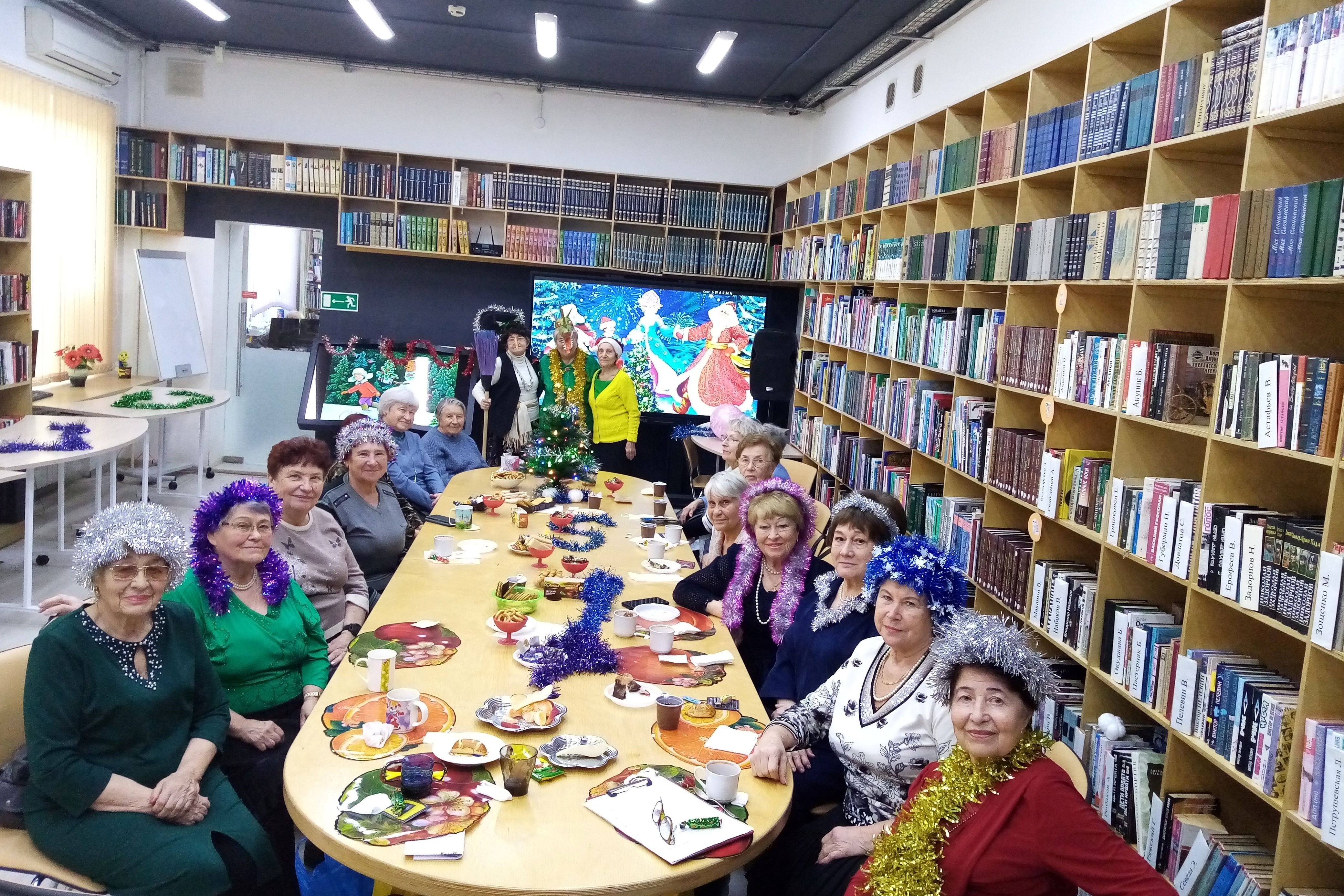 «По книжному яблоневому саду…» под таким названием прошел музыкально-поэтический праздник, посвященный Яблочному Спасу. За праздничным столом собрались участницы клуба. Гости посмотрели интересную презентацию, послушали стихи, для них прошел обзор книг с выставки, для них звучали песни в исполнении ансамбля «Улыбка». На праздничную встречу «Мы встречаем Новый год!» собрались участники сообщества «Люди пожилые, сердцем молодые». Красиво украшенный читальный зал библиотеки, новогодняя красавица-ёлка и яркие красочные новогодние выставки — всё это создало праздничную, сказочную атмосферу.