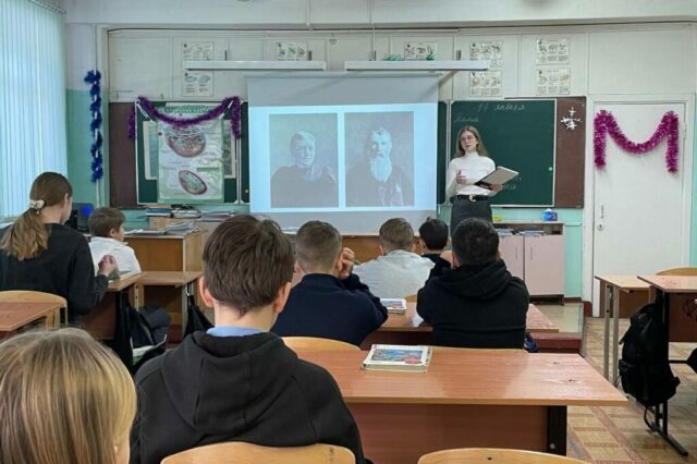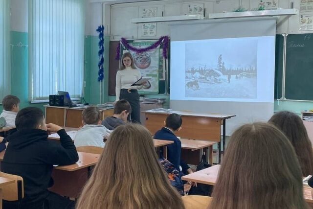 Визуальным дополнением к рассказу стали фотографии, проецируемые на экран. Ребята увидели хижину Лондона, где в долгие арктические ночи собирались самые разные люди: охотники, золотоискатели, индейцы — те самые прототипы будущих героев его произведений. Эти кадры помогли глубже прочувствовать атмосферу, в которой рождались знаменитые истории.