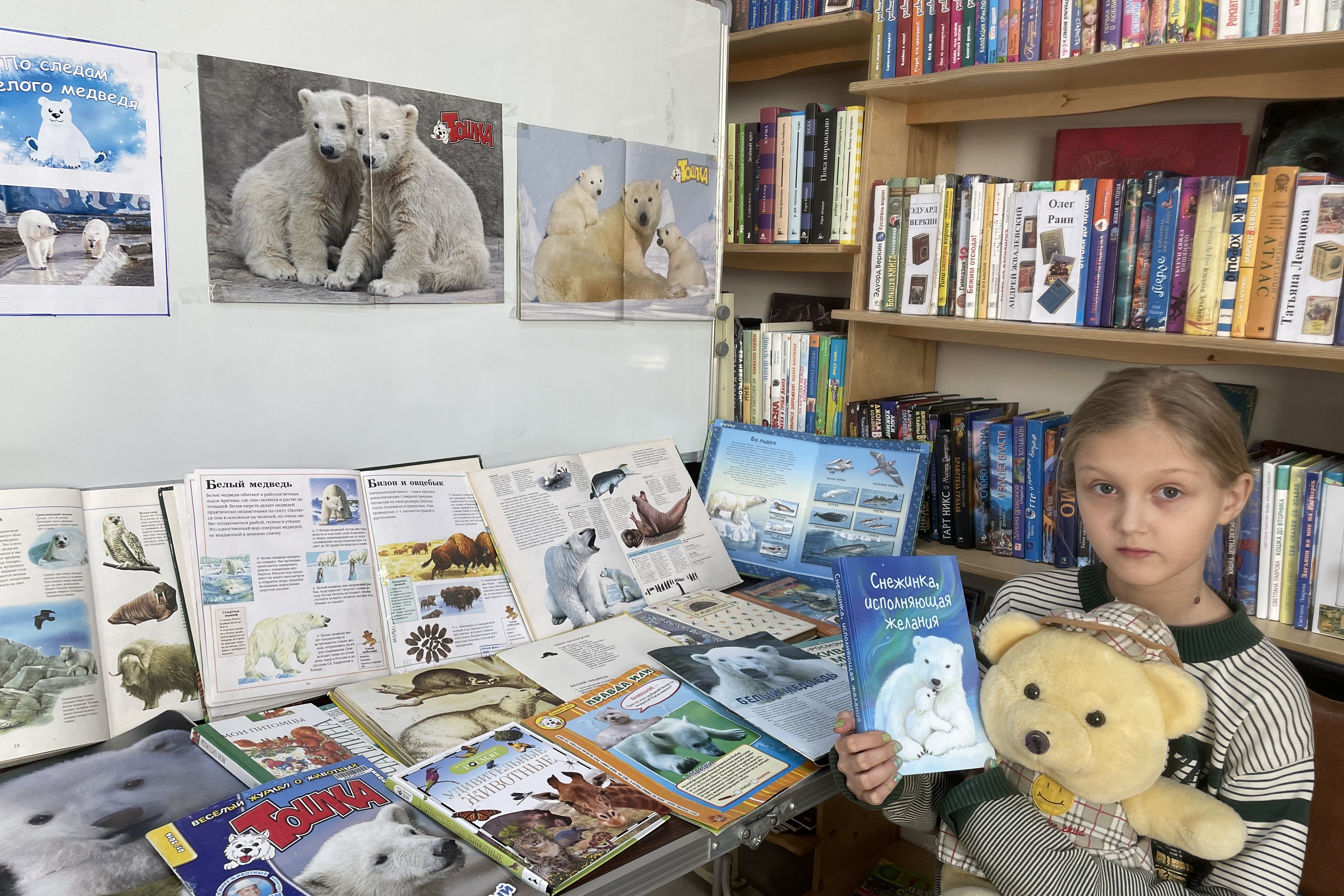 В этот день юные читатели детской библиотеки № 7 и их родители останавливались у книжной выставки, посвященной этому зверю. С интересом рассматривали книги и журналы, слушали интересные факты о том, где обитают, как живут полярные медведи, чем питаются и как ведут себя в той или иной ситуации. Также внимательно смотрели презентацию на эту тему и с удовольствием фотографировались с игрушечным мишкой.