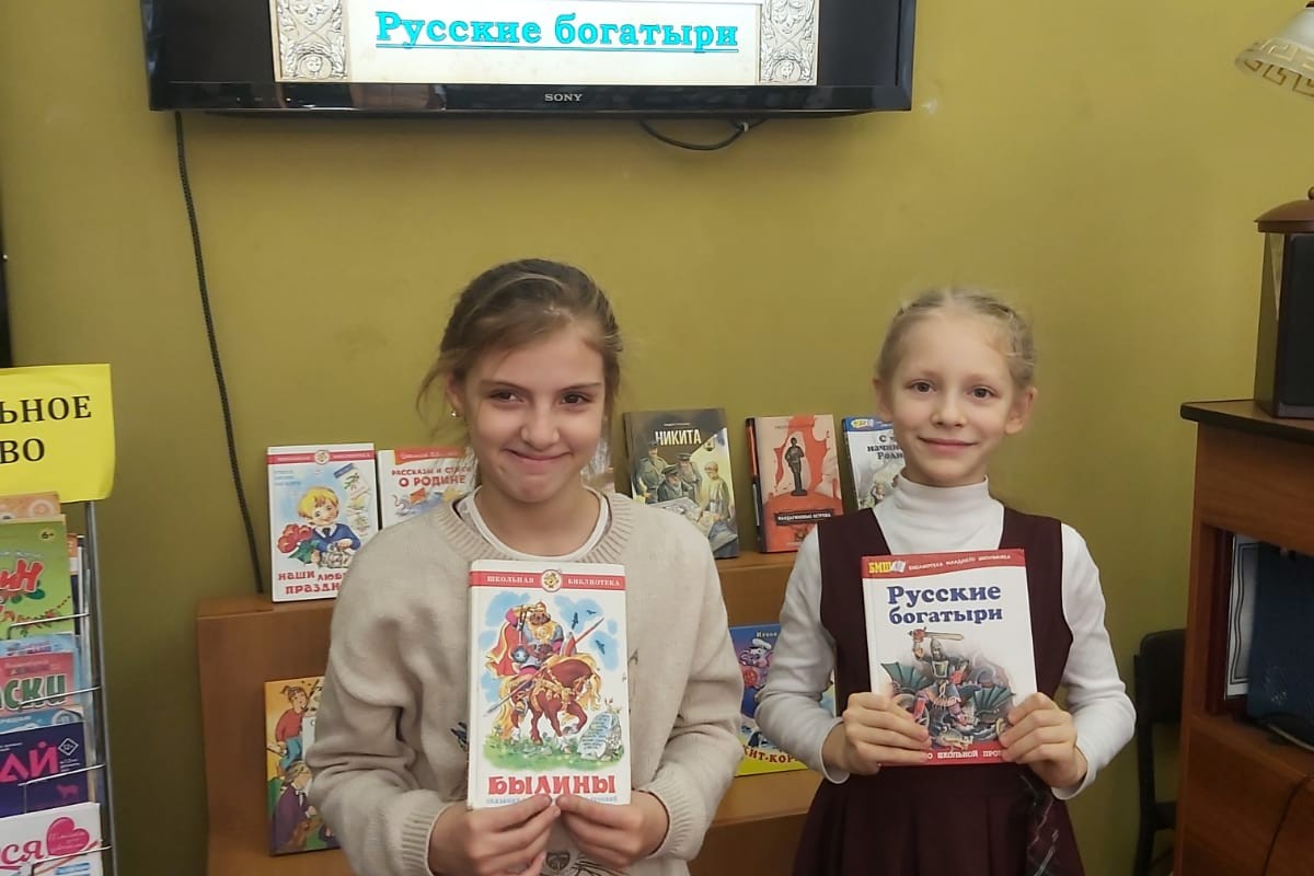 Библиотекари познакомили юных читателей с книгами о былинных богатырях, а также ребятам было интересно узнать о полотнах русских художников, которые посвящены защитникам русских земель: «Богатыри», «Витязь на распутье» Виктора Михайловича Васнецова и «Илья Муромец» Николая Константиновича Рериха.