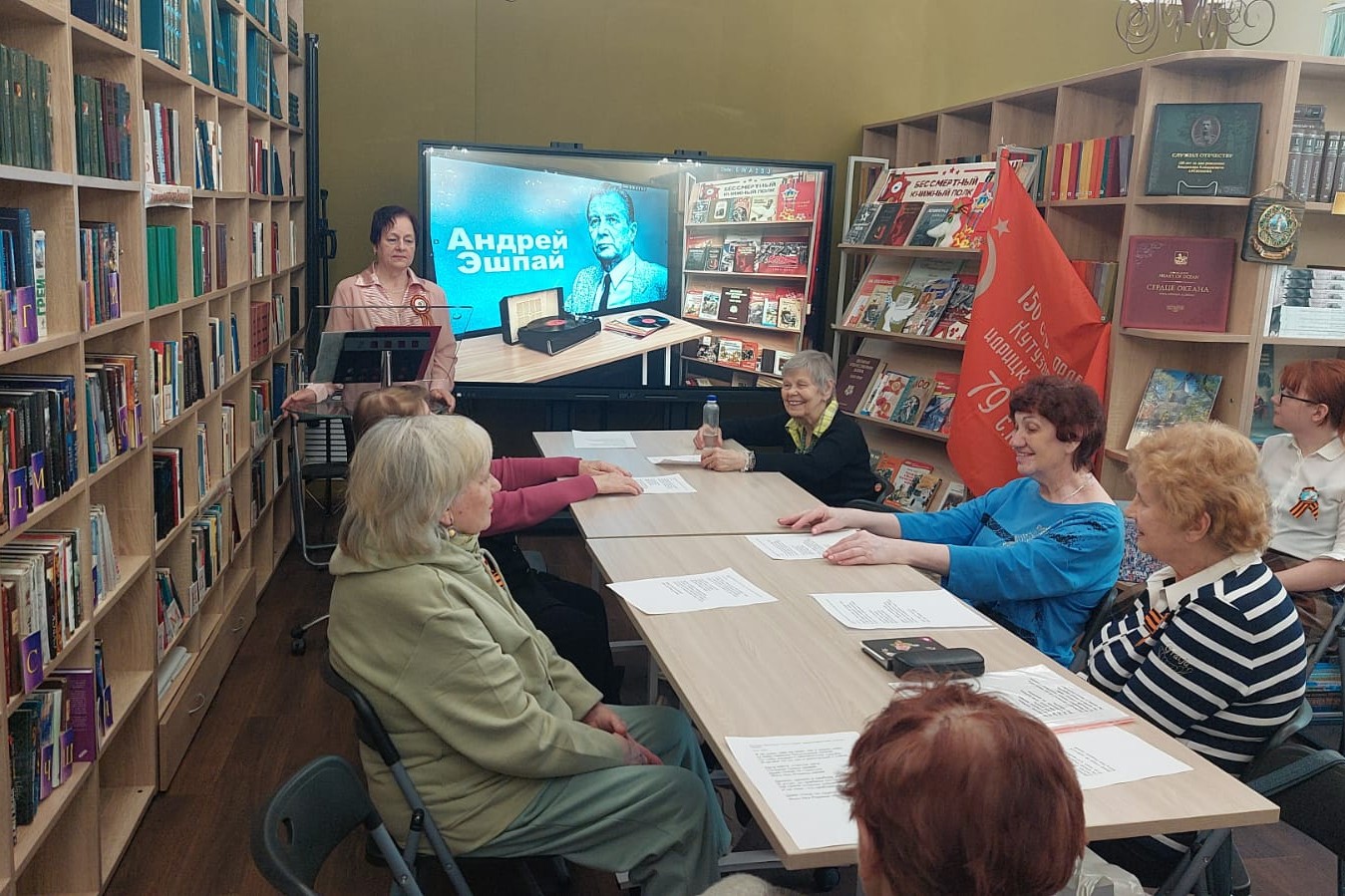 7 мая для членов клубного объединения «В мире прекрасного» библиотека №4 (ул. Светланская, 205) провела мероприятие, посвященное 100-летию со дня рождения советского и российского композитора Андрея Яковлевича Эшпая, ветерана Великой Отечественной войны, 80-летию Победы. С конца 1944 года он находился в действующей армии на 1-м Белорусском фронте. Освобождал Варшаву в должности командира взвода разведки, принимал участие в Берлинской операции. Он написал более ста романсов и песен, среди которых «Москвичи» («Сережка с Малой Бронной…»), на стихи Е. Винокурова, «А снег идет» на стихи Е. Евтушенко, «Два берега» на стихи Г. Поженяна. А. Эшпай автор музыки к более чем 60 кинофильмов. Прозвучали песни в исполнении Марка Бернеса, Майи Кристалинской, Леонида Утесова, Вадима Трошина. Все мелодии знакомы гостям – это песни их молодости.