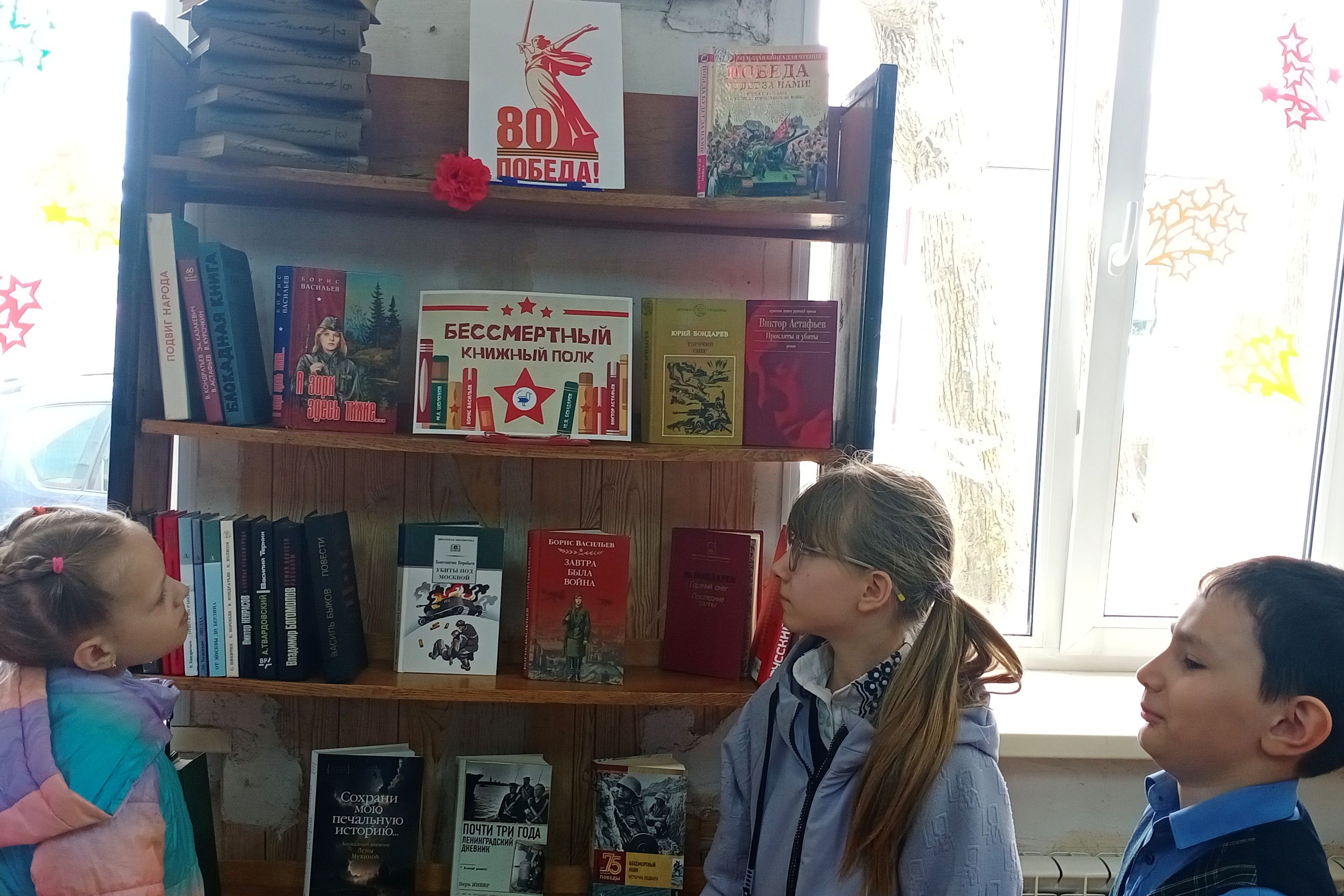 Накануне праздника 80-летия Великой Победы в детской библиотеке №7 (ул. Калинина, 281) юные читатели, иногда и вместе с родителями, знакомились с литературой, представленной на тематической книжной выставке, посвященной событиям Великой Отечественной войны, с книгами «Бессмертного книжного полка». Книги, представленные на выставке, раскрывают события той суровой военной поры, рассказывают о людях, которые мужественно и упорно, не щадя сил и самой жизни, в жестоких боях ковали победу над врагом, о тех, кто отстоял свободу и независимость нашей Родины, помог другим народам сбросить фашистское иго.