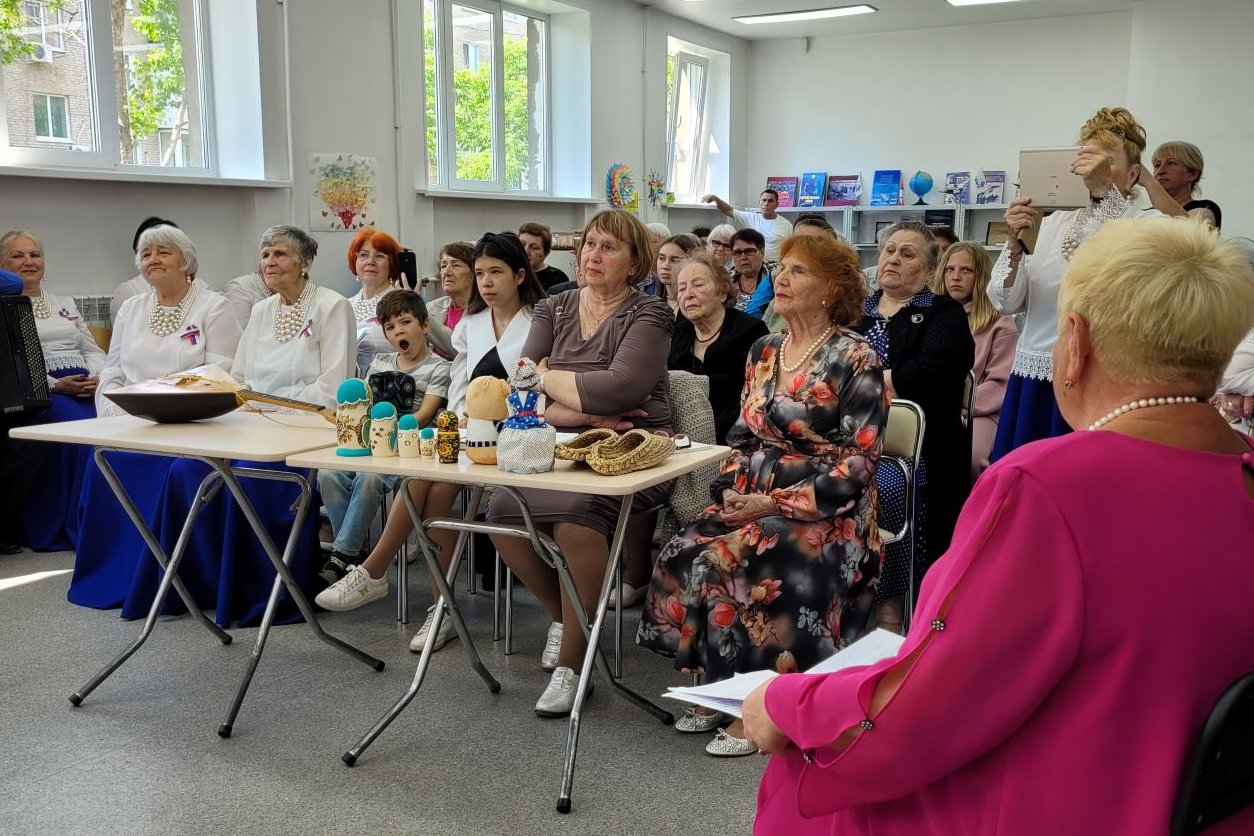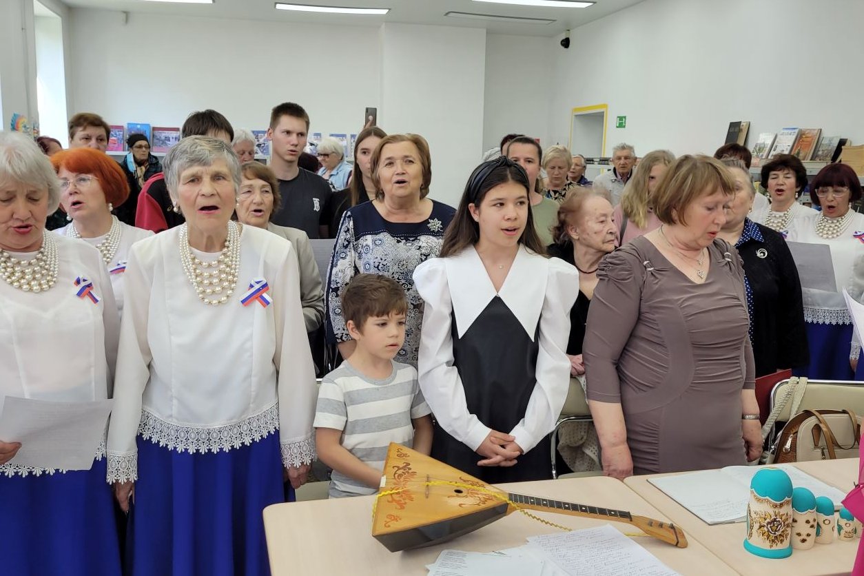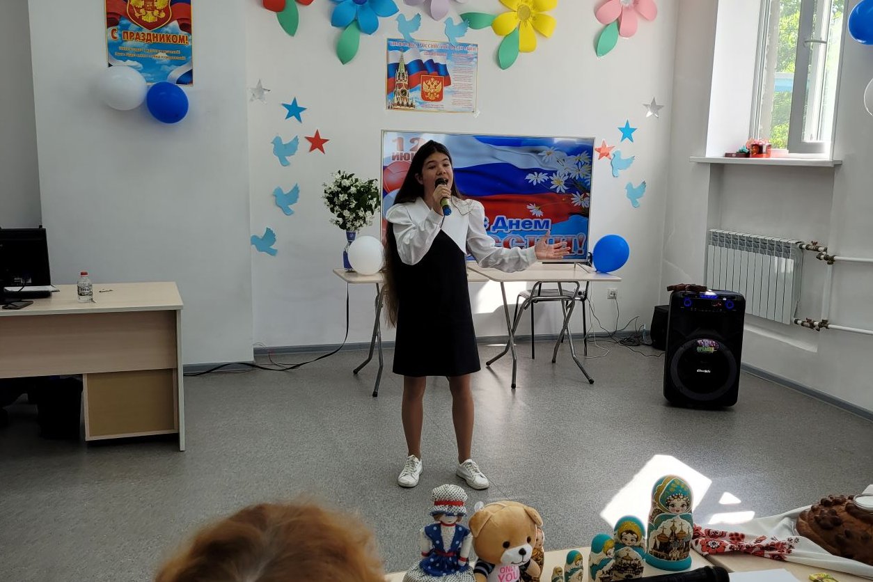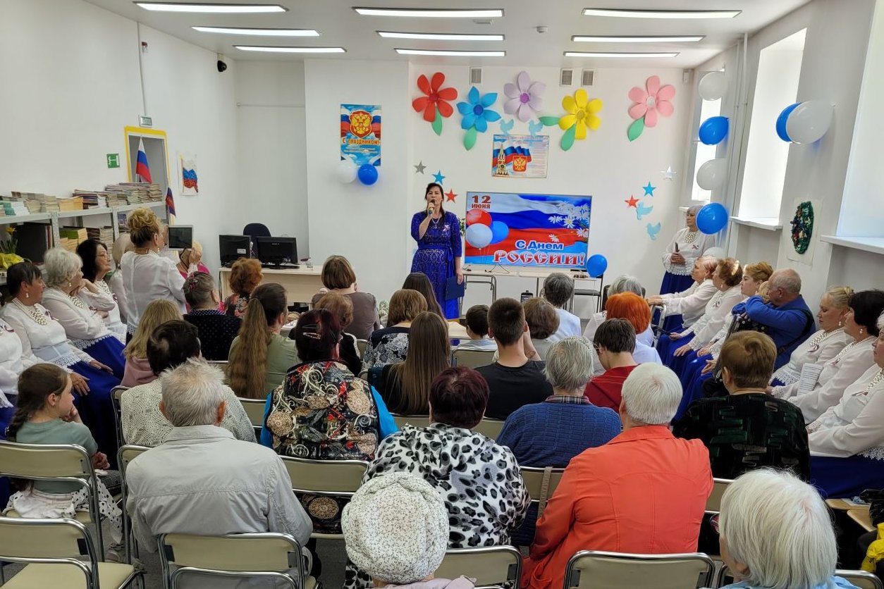 В библиотеке №2 пос. Трудовое прошел праздник «Горжусь тобой, моя Россия!», посвященный Дню России, с участием Совета Ветеранов поселка и хора «Жемчуга». Совет Ветеранов и читатели библиотеки собрали выставку поделок: русские лапти, несколько наборов матрешек, балалайка (исполнили этюд на балалайке) и конечно же русский медведь — возглавлял эту экспозицию.