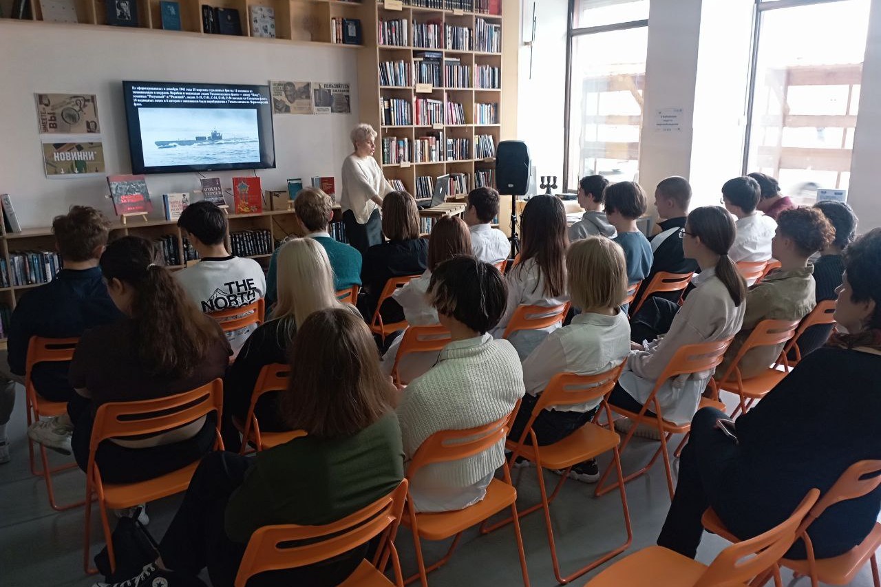 Для формирования у подростков понимания важности исторического наследия своей страны, патриотических чувств и уважения к предкам сотрудники ДБС1 подготовили и провели для учеников мероприятие с просмотром архивных фотографий, чтением фрагментов документов и воспоминаний участников войны. Рассказали ребятам о жизни приморских городов и сел в период войны, о подвигах дальневосточников, которые не только принимали участие в боях, но и трудились в тылу на благо своей Родины