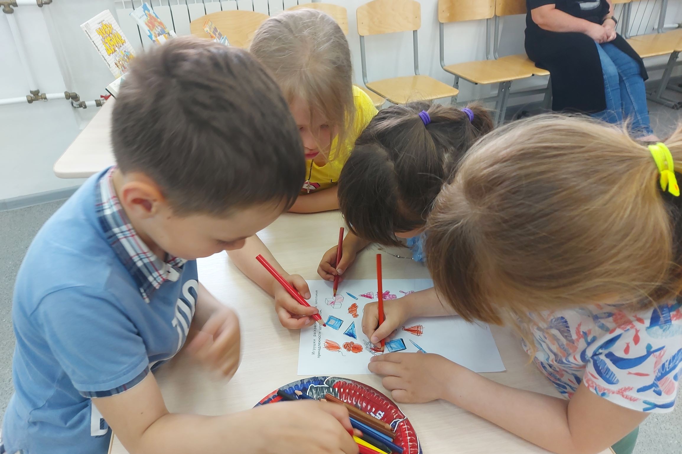 В библиотеке № 2 продолжается цикл мероприятий «Играем в школу» в рамках программы «Лето просвещения 2023». На прошлой неделе воспитанники детского сада № 123 приняли участие в игре-викторине «Что я знаю про школу». Сегодняшней темой мероприятия был познавательный час «Что мне в школе пригодится». Чтобы проверить, как дошколята готовы к школе, им загадывали загадки, которые они с легкостью отгадали. Также раскрашивали картинки: со школьными принадлежностями в синий цвет, а игрушки – в красный. Затем поиграли в игру «Собери рюкзак в школу». Выходили по два человека и под веселую музыку ребята соревновались между собой. Как всегда в библиотеке было шумно и весело.