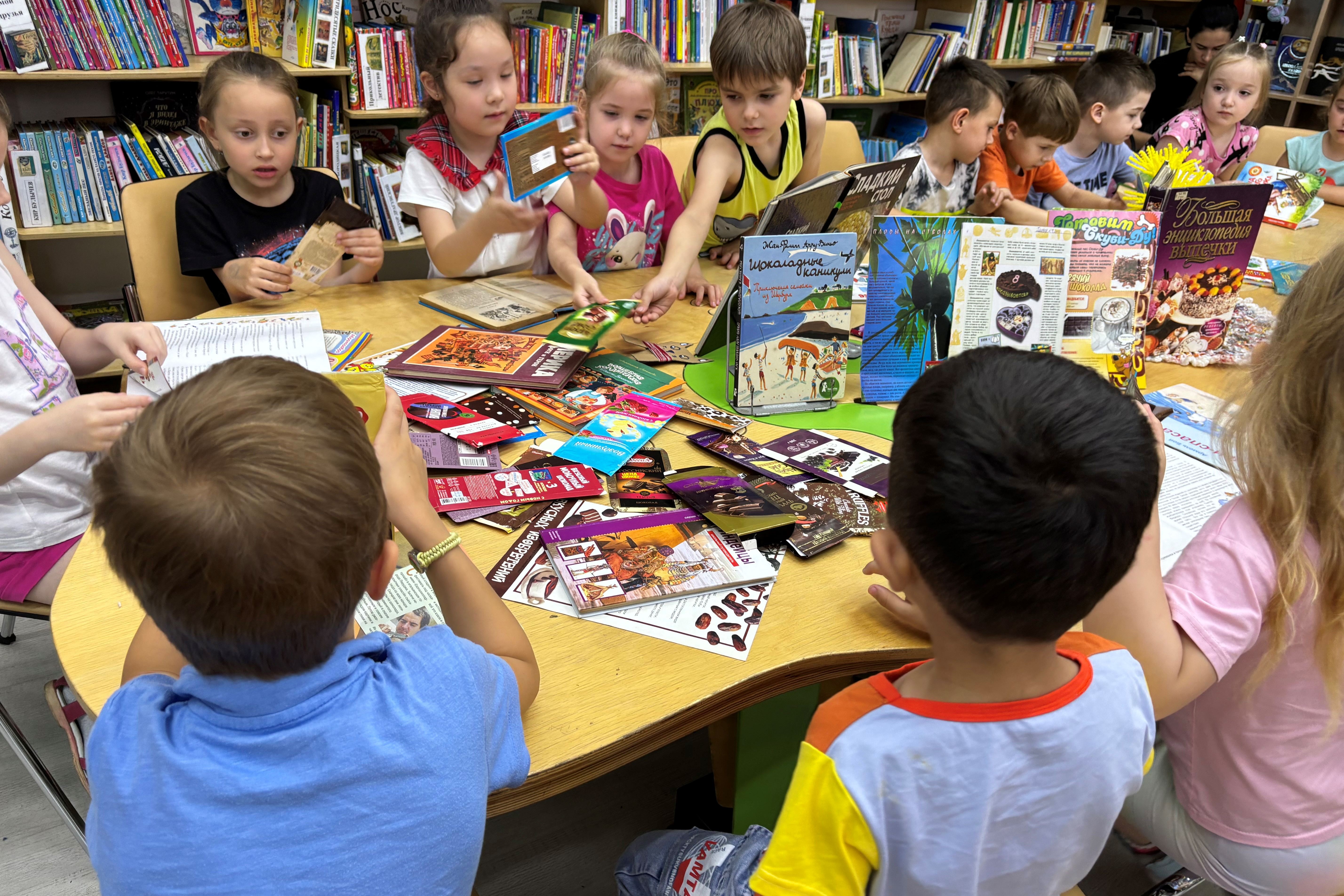 Воспитанники детского сада №39 отмечали 11 июля в детской библиотеке № 7 Всемирный день шоколада. Он отмечается 11 июля, в самый разгар жаркого лета. Дети с большим интересом слушали занимательные истории о шоколаде, где и когда он появился, узнали, из чего делают шоколад, кто первый научился варить шоколад, как он стал твердым.