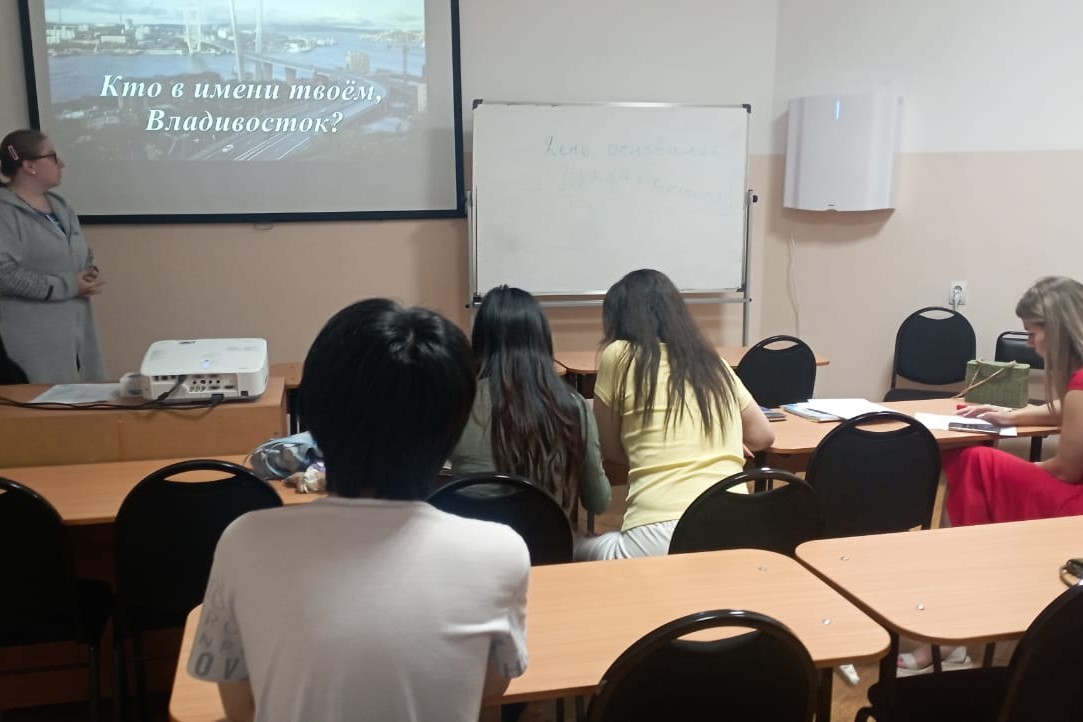 День рождения Владивостока – не только яркий памятный день, но и прекрасный повод узнать о его истории, особенностях и достопримечательностях. В связи с этим сотрудник библиотеки № 21 в рамках проекта «Дорога в Россию» в очередной раз посетил Центр русского языка и культуры для проведения лектория «Кто в имени твоем, Владивосток?», чтобы рассказать о появлении, развитии города, а также важных лицах его истории.