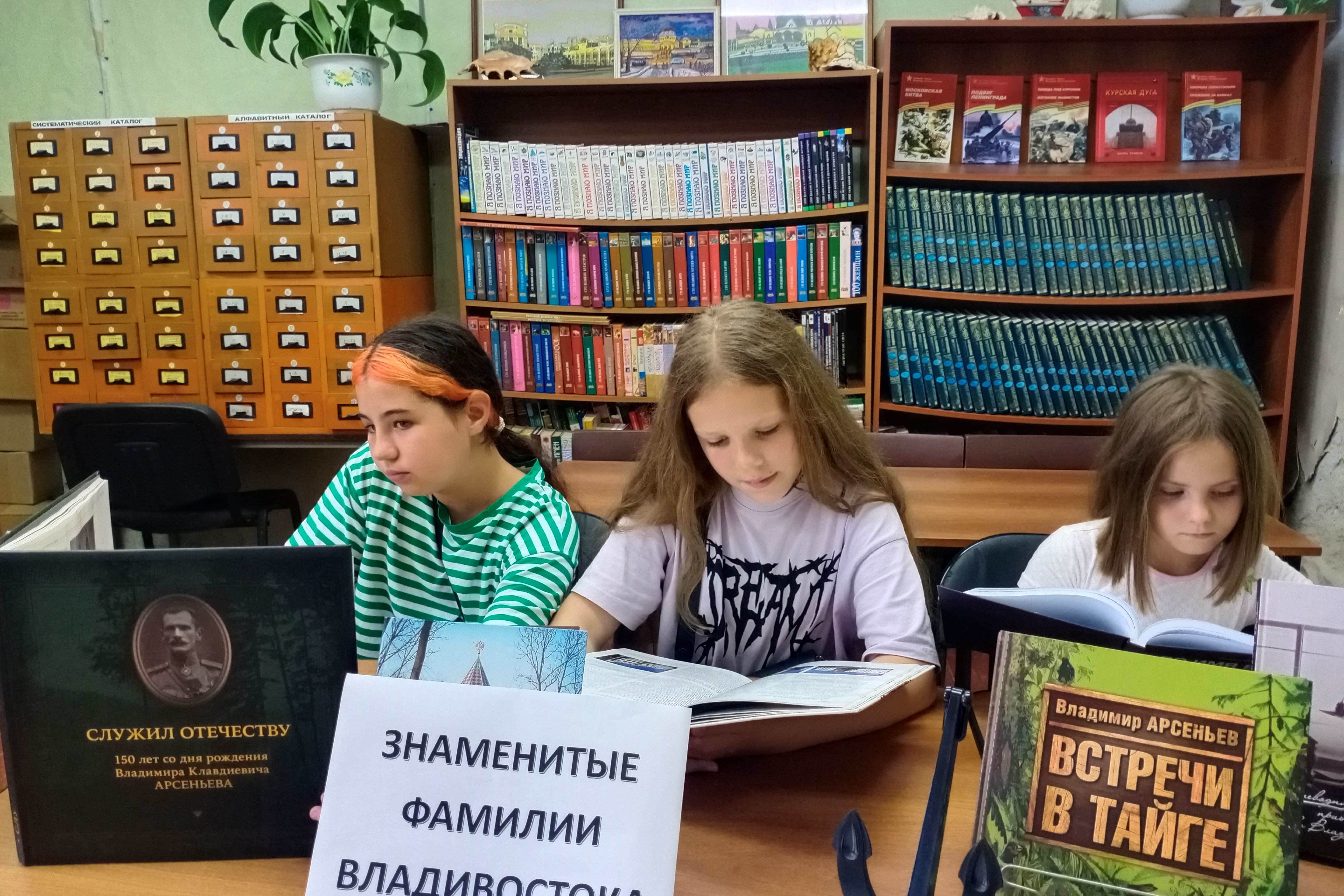 В библиотеке № 9 (ул. Талалихина, 9) в рамках программы Библиотечной системы Владивостока «Наследие» для юных читателей прошла 4 июля краеведческая беседа «Знаменитые фамилии Владивостока».