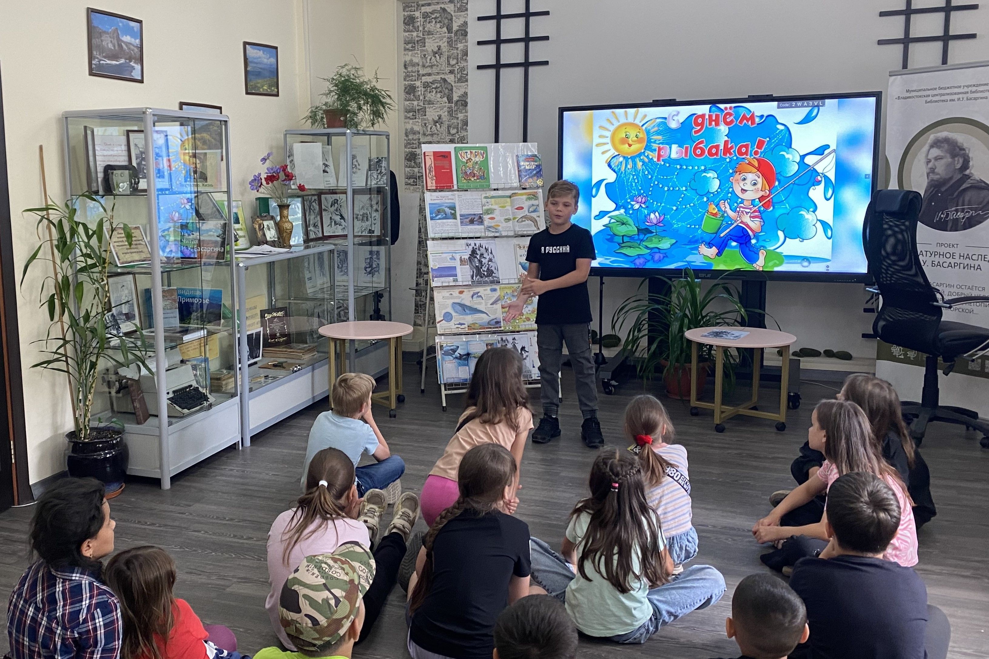 11 июля в библиотеке им. И.У. Басаргина (ул. Адм. Юмашева, 8) состоялся творческий калейдоскоп, посвящённый Дню рыбака для учащихся МБОУ «СОШ № 66» пришкольного лагеря. Ребята познакомились с разными видами любительской рыбалки и промышленным рыболовством. Проведённая викторина проявила знание детей по многим вопросам: сколько существует видов рыб, какие из них самые большие и самые маленькие, что такое приливы и отливы, рыборазводные фермы, какая рыба идёт из моря в реку на нерест, а какие виды занесены в «Красную книгу». Детей увлекла игра «Море волнуется…» Главными участниками её были персонажи морской фауны из свиты Нептуна: дельфин, морская звезда, гребешок, морской конёк, креветка, трепанг, морской ёж и др. Большой успех имел рассказ «Кот-рыболов» В. Сутеева. Прочли его по ролям и горячо обсуждали, почему эта рыбалка оказалась неудачной. Книжная выставка пестрела «портретами» разных обитателей морей от хищников до вегетарианцев. Встреча наша завершилась чтением стихов. Глеб Дегтярёв, ученик 4-го класса, прочёл своё собственное произведение под названием «Русский воздух».