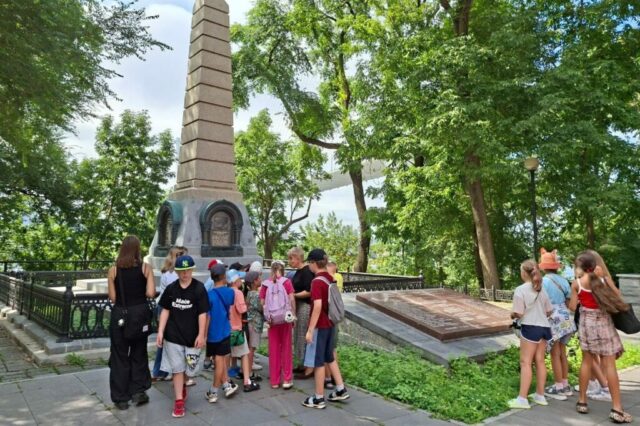 Утром 12 августа сотрудники библиотеки № 1 им. А.С. Пушкина организовали и провели для учащихся младших классов пешеходную экскурсию по главной улице Владивостока, на которой юные участники познакомились с мемориальными памятниками, посвященными выдающимся историческим личностям, с художественными скульптурными композициями, а также с современными муралами. Каждый объект раскрывал перед детьми образы героев различных исторических периодов, позволяя проследить связь между прошлым и настоящим города.