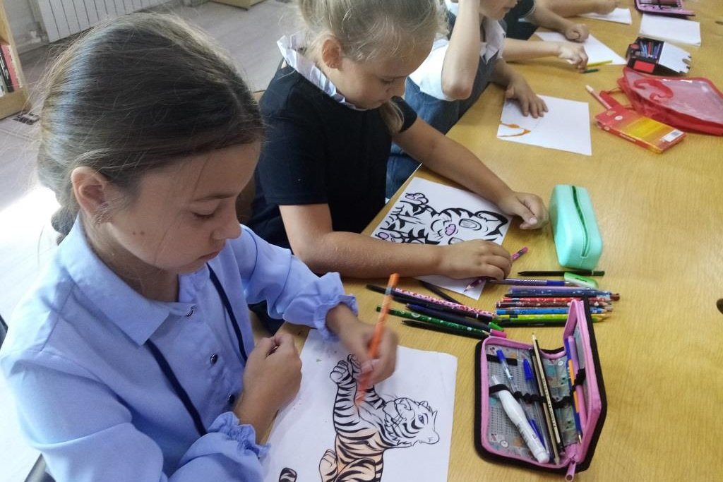 Так, третьеклассники побывали на мероприятии «Тигр – гордость Приморья». В ходе беседы ребята рассматривали пример — амурского тигра, мощного, крупного, но беззащитного против вырубки лесов — его естественной среды обитания и, тем более, против вооруженного человека, который хочет заполучить его роскошную шкуру. Не случайно полосатый амурский красавец попал в Красную книгу. Ребята узнали много интересных фактов из жизни представителя семейства кошачьих, особенно интересным оказалось, что полосатый рисунок на шкуре тигра уникален, как отпечатки пальца у человека, хищник — искусный имитатор, мастерски подражает голосу животных, подманивая их к себе.