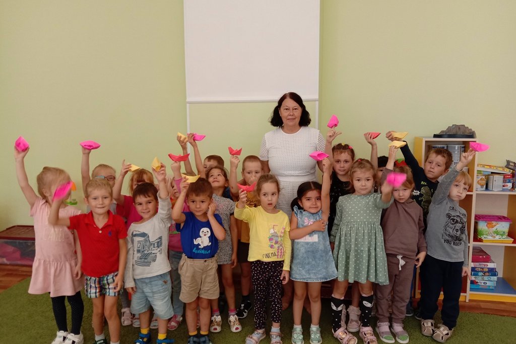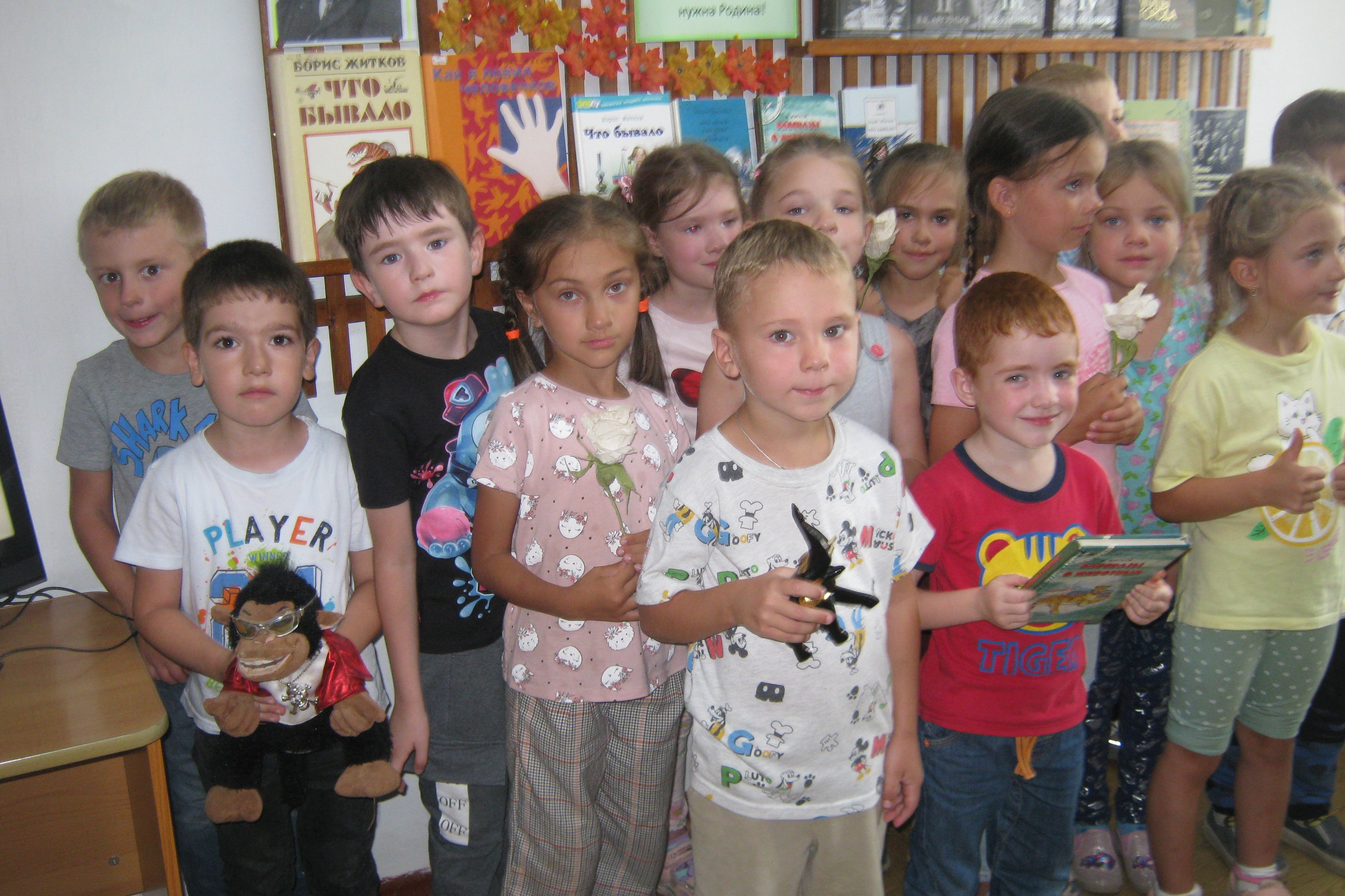 9 сентября состоялась первая встреча с ребятами из детского сада № 155 – начало совместной работы библиотеки и детского сада. Детям рассказали, что такое библиотека – это место, где много книг, которые можно почитать в библиотеке или взять домой. После знакомства, ребята так же послушали рассказ про Бориса Житкова и посмотрели мультфильмы по его книгам. Дети назвали, какой из мультфильмов понравился им больше других, рассказали, кто из героев увиденных мультфильмов им понравился и почему (Тигр — красивый и храбрый, Слон — защитил своего хозяина, утёнок Лёша — защитил друзей, Галка — забавная). Встреча завершилась совместной фотографией детей с полюбившимися им книгами Бориса Житкова.