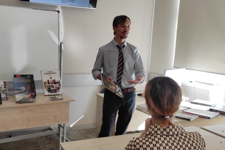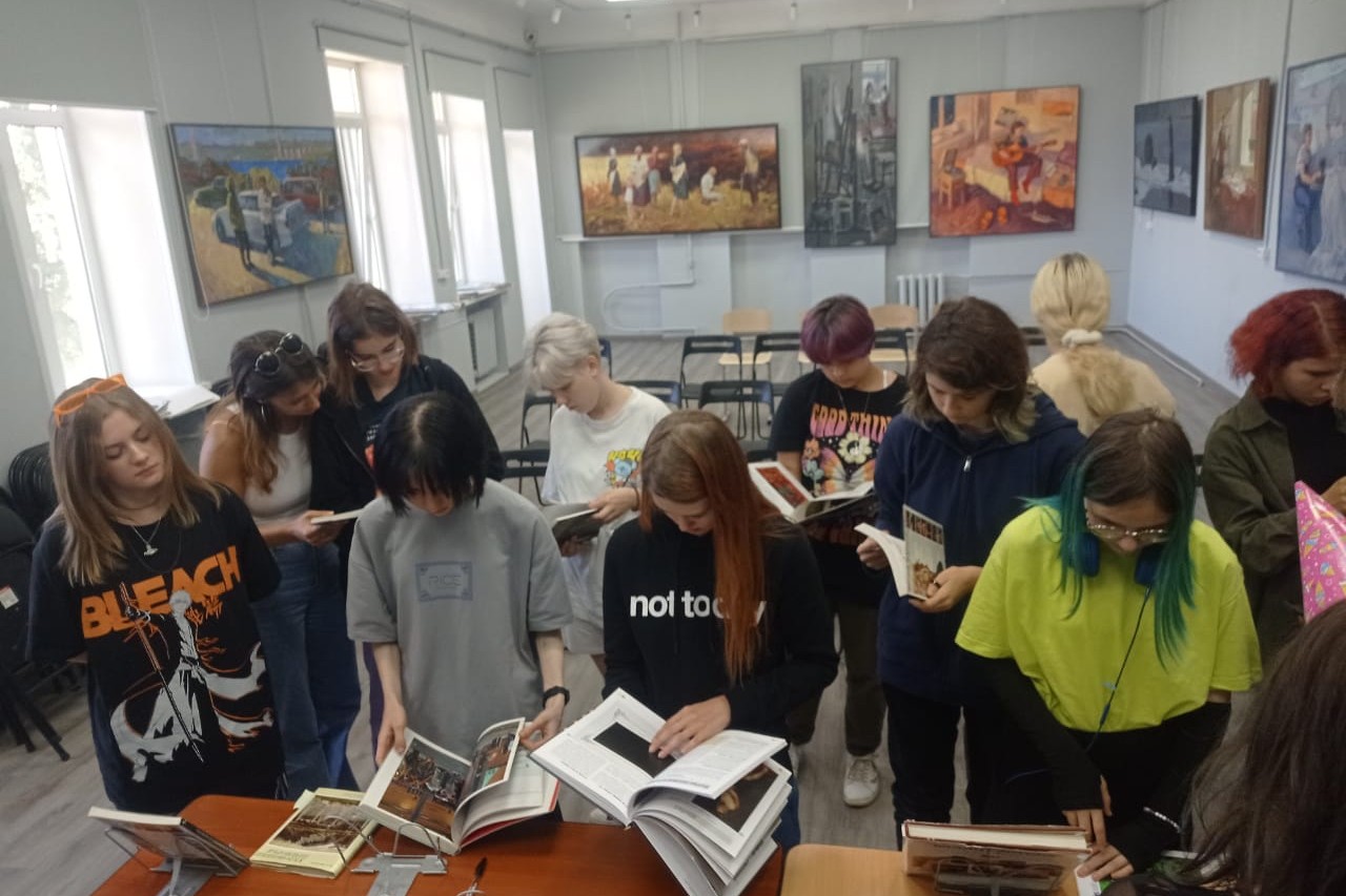 Первокурсников познакомили с серией книг по искусству живописи Приморья. Они с интересом перелистывали альбомы с репродукциями К.И. Шебеко, маринистов-дальневосточников, энциклопедии и справочники по мировому и русскому искусству. Особенно произвела впечатление книга с оцифрованным картинами и дополненной реальностью, когда с помощью приложения в телефоне можно посмотреть на мировые шедевры и прикоснуться к коллекциям мирового масштаба (совсем недавно серия книг с подобным мультимидийным эффектом поступила в библиотечную систему г. Владивостока). Еще впечатлила первокурсников книга «Владивосток в репродукциях художников», из которой они узнали, что большинство художников отмеченных в книге окончили учебное заведение в котором они учатся сейчас, только ранее он назывался Владивостокское художественное училище.