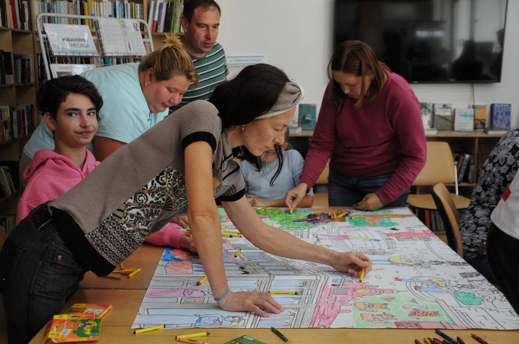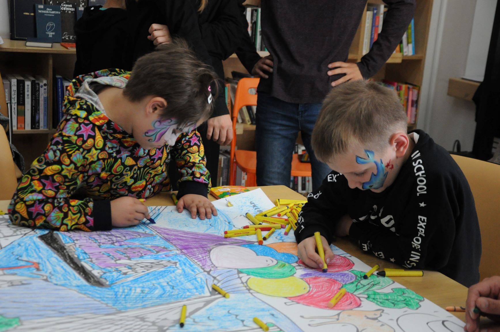 В рамках городского инклюзивного проекта «Хрустальный мир» проходят встречи, на которых дети с инвалидностью и без ограничений здоровья вместе раскрашивают картины. 8 октября в библиотеке БУК состоялось творческое занятие «Рисуем вместе».