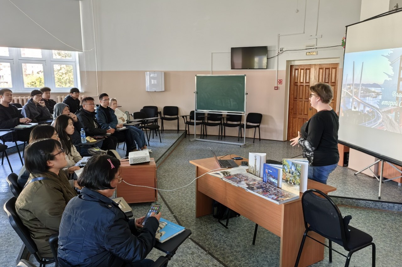Владивосток – город, полный живописных мест, привлекающий гостей со всех уголков как России, так и всего мира. У него богатая история, разнообразная элегантная архитектура и яркая природа, от которой порой не оторвать глаз. Узнать больше о нашем городе и ознакомиться с лучшими его творениями стремятся и иностранцы, приезжающие в Россию учить русский язык. Чтобы рассказать о ключевых достопримечательностях Владивостока, библиотека №21 в очередной раз нанесла визит Центру русского языка и культуры. Встреча состоялась в рамках проекта «Дорога в Россию».