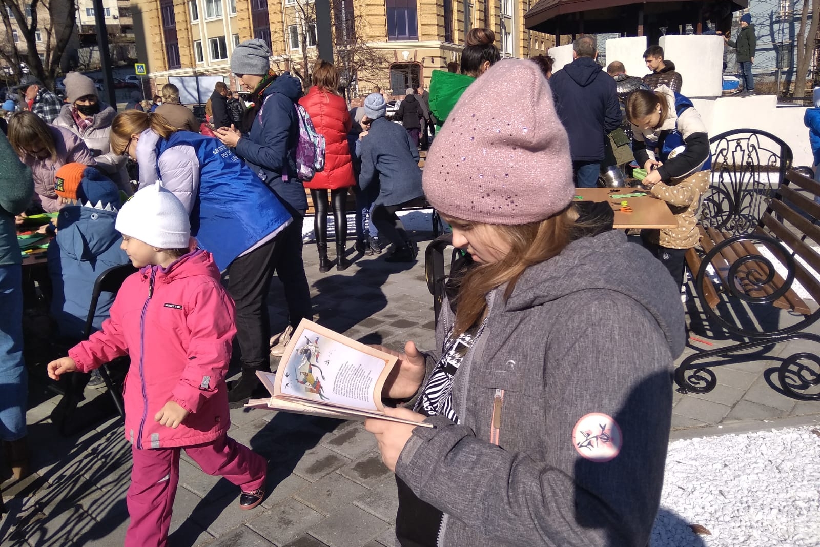 После ремонта сквер стал уютным, светлым, вполне располагающим для прогулок и отдыха горожан. И в этот день пришли на праздник немало людей, но преимущественно приходили семьями. Много было молодежи, подростков. Библиотечная система Владивостока предлагала гостям праздничного мероприятия вспомнить сказки Александра Сергеевича Пушкина. И все с удовольствием вспоминали, дети так даже пытались читать сказки наизусть, и видно было, что их помнят все. Справлялись с заданиями и школьники, молодежь, взрослые, когда им предлагали ответить на вопросы литературной игры по сказкам А.С. Пушкина. Даже после небольшого затруднения с ответами на вопросы по сюжетам сказок, многие тут же брали с выставки книги, и выражали намерения обязательно почитать сказки дома вместе с детьми.