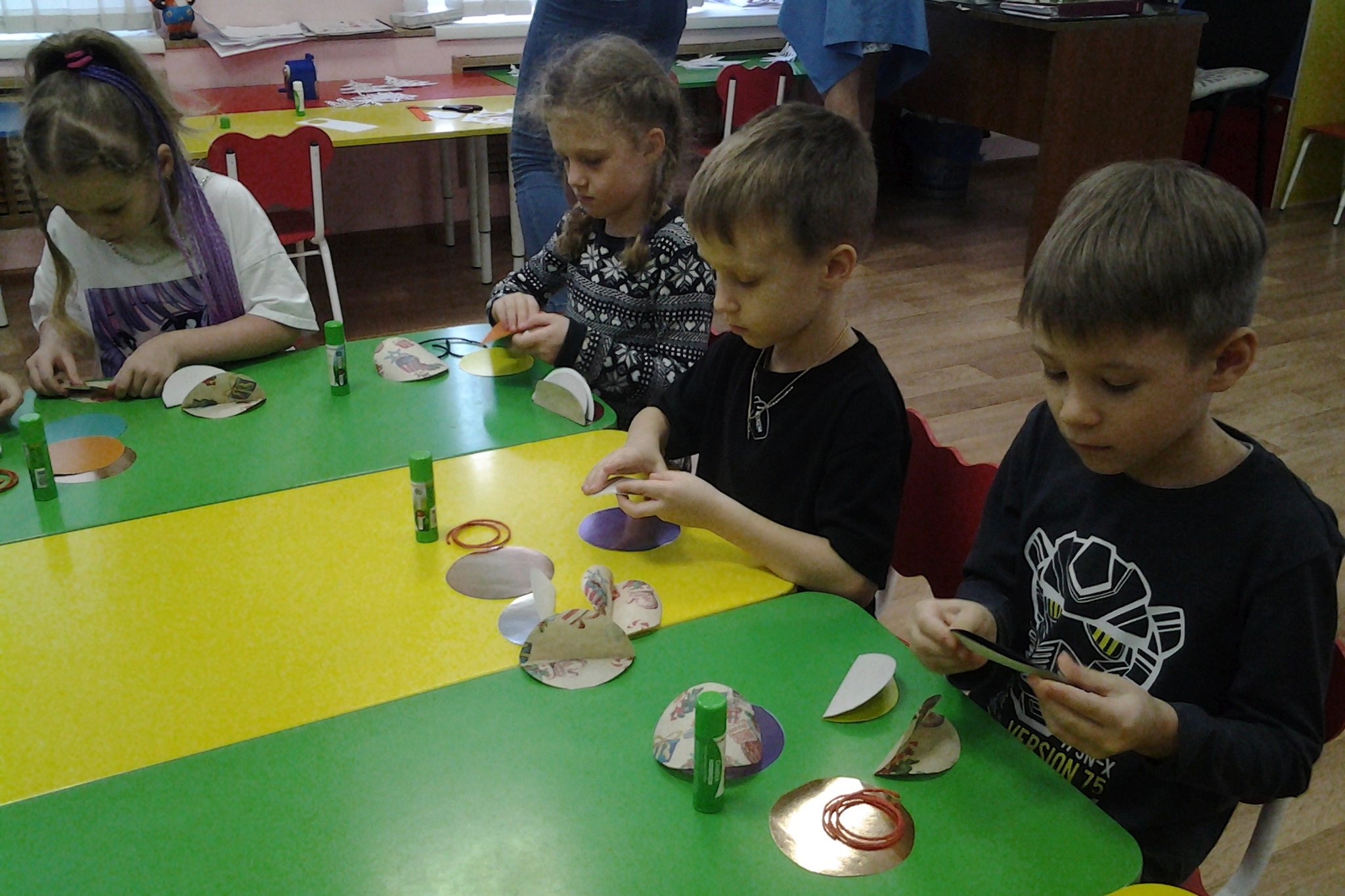 Прежде, чем начать творить, сотрудники библиотеки познакомили ребят с историей новогодних игрушек, рассказали, как появились новогодние игрушки: первые елочные игрушки на Руси демонстрировали изобилие – яблоками, орехами, конфетами, изделиями из теста, горящими свечами украшали новогодние деревья. Далее появились артели, которые делали игрушки стеклянные. Наибольшее распространение ремесло получило в Клинском уезде, где позднее основали фабрику «Елочка», и сейчас выпускающую новогодние игрушки. Большое распространение получили игрушки из папье-маше и ваты, а также картонажные игрушки. Эти тисненые фигурки вырезались и склеивались из двух половинок выпуклого картона, тонированного золотой или серебряной краской. В наши дни, в кругах коллекционеров новогодних украшений, такие сохранившиеся игрушки из папье-маше и картонажа наиболее ценны и дороги.