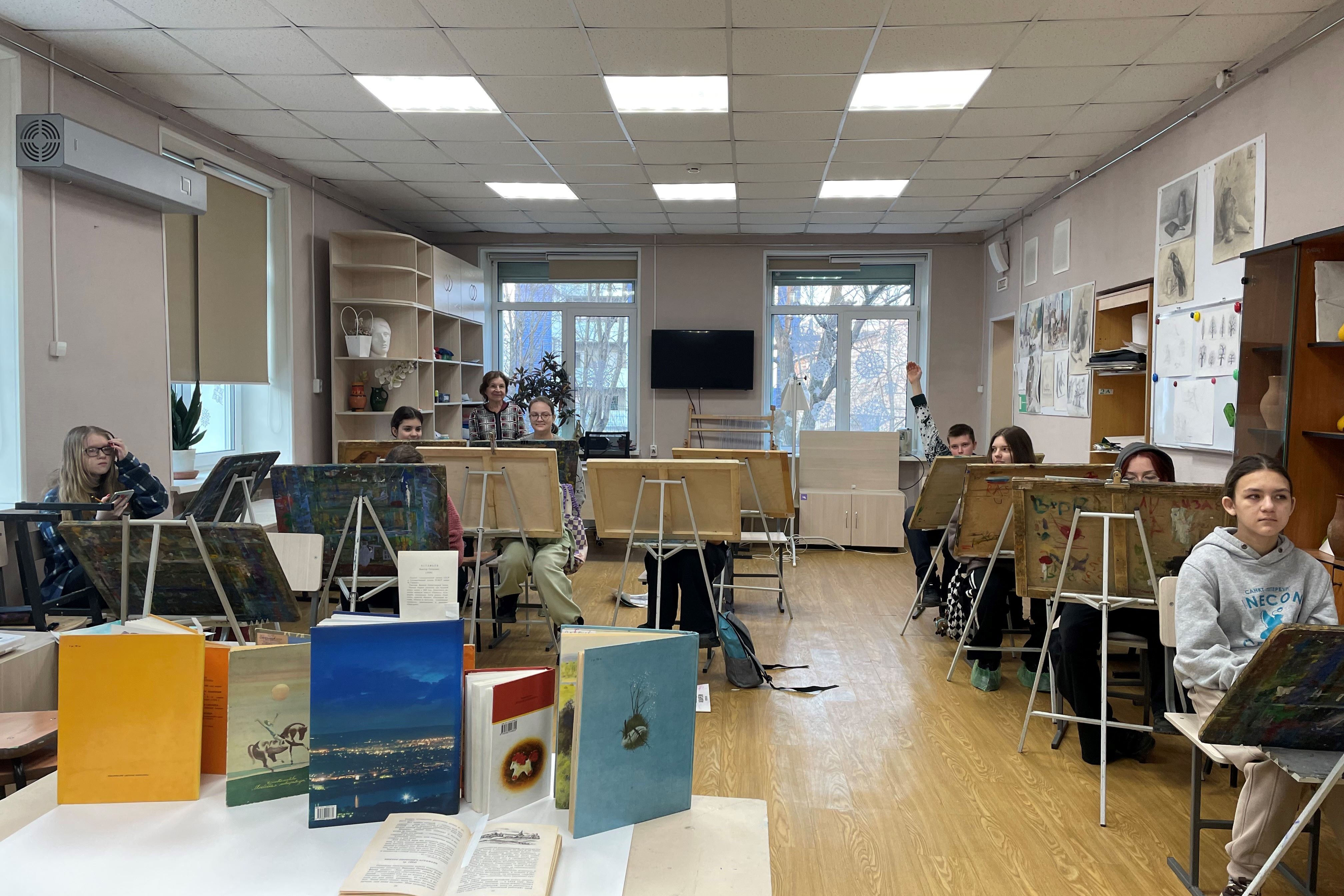 С интересом рассматривали иллюстрации в книгах, отмечая, что они написаны художниками в разных техниках. Теперь ученикам после прочтения рассказов предстоит творческая работа по его произведениям, потому что 2024 год в художественной школе № 3 посвящен жизни и творчеству этого прекрасного русского писателя, который всем сердцем любил енисейскую землю и посвятил ей так много строк.