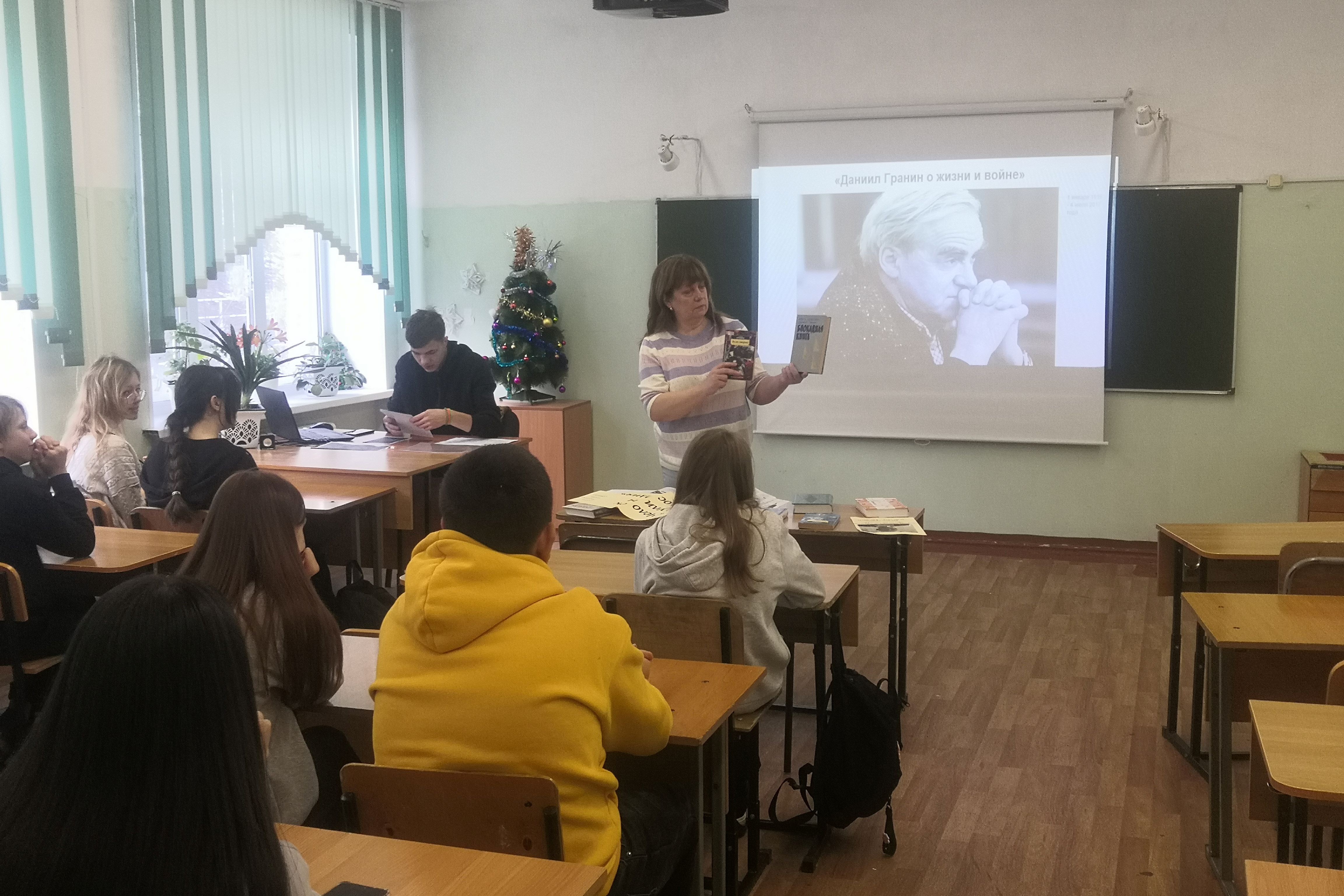 Библиотека № 16 для учащихся 8 «А» и 8 «Б» классов СОШ № 43 провела литературный час «Даниил Гранин о жизни и войне». 1 января 2024 года исполнилось 105 лет со дня рождения русского писателя, участника Великой Отечественной войны, общественного деятеля Даниила Александровича Гранина. Гранин писал достойные книги, определяя в лучших своих произведениях нравственные критерии для читателя.