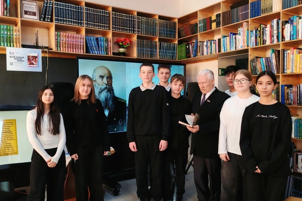 Час истории «Один из первых», посвященный одному из основателей и первостроителей Владивостока Бурачку Евгению Степановичу, в библиотеке № 12 провел писатель-краевед Сидоров Николай Васильевич для восьмиклассников СОШ № 62.