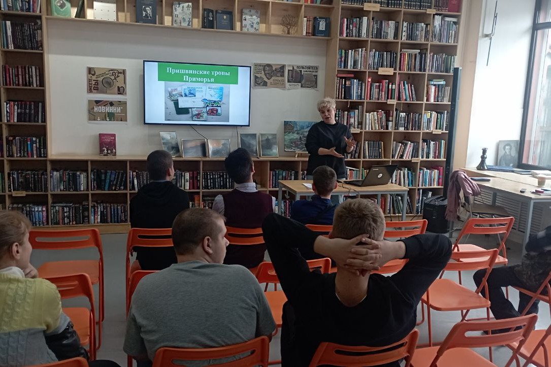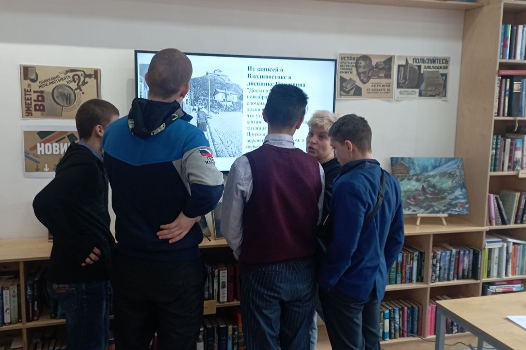 7 и 10 февраля библиотека им. А.С. Пушкина «БУК» организовала краеведческие часы «Пришвинские тропы Приморья» для детей ОВЗ КШИ № 1. Сотрудники библиотеки рассказали о впечатлениях Михаила Пришвина от поездки на Дальний Восток. Показали фотографии, сделанные писателем во Владивостоке. Зачитали рассказы, написанные Михаилом Михайловичем, во время своего пребывания в оленеводческом хозяйстве в бухте Сидеми, на мысе Гамова, на полуострове Песчаный, на островах залива Петра Великого. Особенно понравилось ребятам слушать отрывки о Владивостоке из дневников М. Пришвина и очерка «Голубые Песцы».