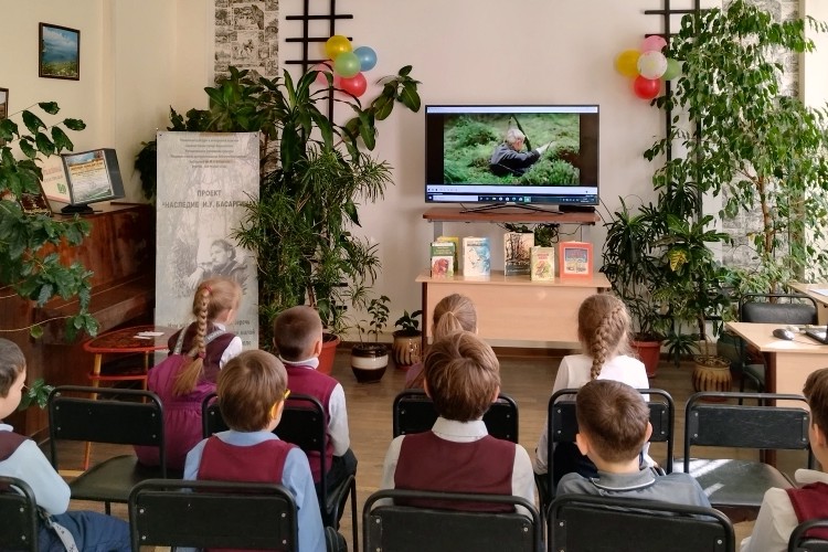 Библиотека им. И.У. Басаргина провела флешбук по книгам писателя для учащихся начальных классов МБОУ «СОШ № 57». Знакомство с творчеством классика проходило в игровой форме. Ребята разгадывали загадки о природе, читали отрывки из книги «Беличья память» — это сборник небольших рассказов Михаила Пришвина о природе (знакомились с книгами автора: «Кладовая солнца», «Этажи леса», «Про птиц и зверей», «Рассказы о животных» и др. Потом увлеченно собирали слова из набора предложенных им букв. Получившиеся слова были названиями рассказов писателя. А в завершение мероприятия школьники смотрели буктрейлер по мотивам произведения Михаила Пришвина «Кладовая солнца». Эта повесть писателя написана и опубликованная в 1945 году.