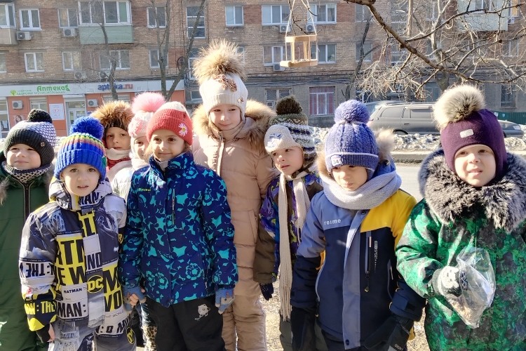 В завершении все дружно повесили кормушку с кормом на дерево и наблюдали за повадками прилетающих пернатых, бурно обсуждая происходящее. Дети заметили, что больше всего из корма понравились семечки подсолнуха. На протяжении беседы высказались все ребята, подведя итог, что тяжело птицам зимой и человек может помочь пережить им холод, очень важно внимательно и бережно заботиться о пернатых друзьях.
