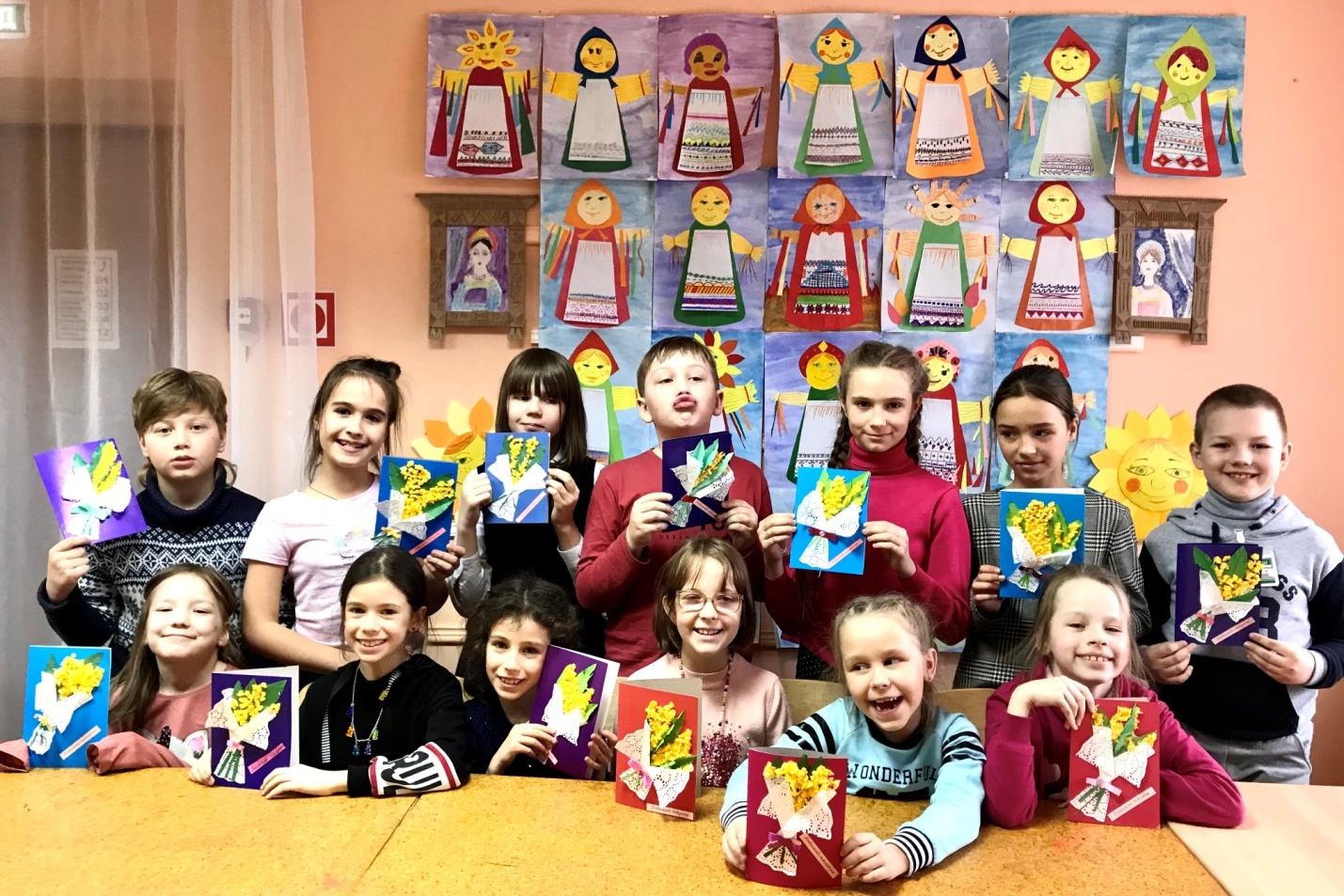 Холода еще не отступили, мороз кусается, но зиму мы весело провожаем. Масленицу по обычаю празднуют все, чтобы год был радостнее, удачнее и сытнее. Блинами и играми «умасливаем», упрашиваем солнышко быть ярче, добрее и веселее. В этом году совпали праздники 8 Марта и Масленица, но подснежники еще не распустились, поэтому для любимых мамочек дети приготовили отличные открытки с букетом мимозы и теплыми словами.