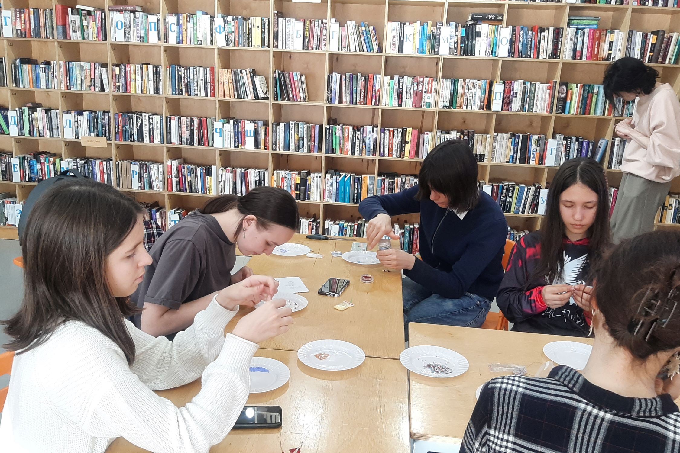 Творческое воображение и фантазия заложены в каждом человеке, бисероплетение – интересная возможность попробовать себя в кропотливом, требующем аккуратности и внимательности деле — следующим состоялся мастер-класс по флористическому бисероплетению. Непоседливые подростки вырастили потрясающие яркостью красок, разнообразием форм и размеров цветы из бусин и бисера. Современной эстетики в этот субботний вечер добавила выставка-презентация в жанре киберпанк от молодого художника Александра Пьянова. В экспозиции были представлены картины и керамические статуэтки.
