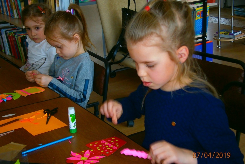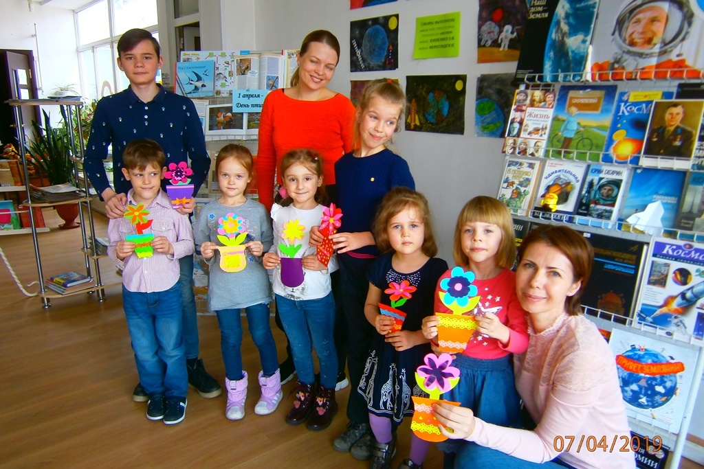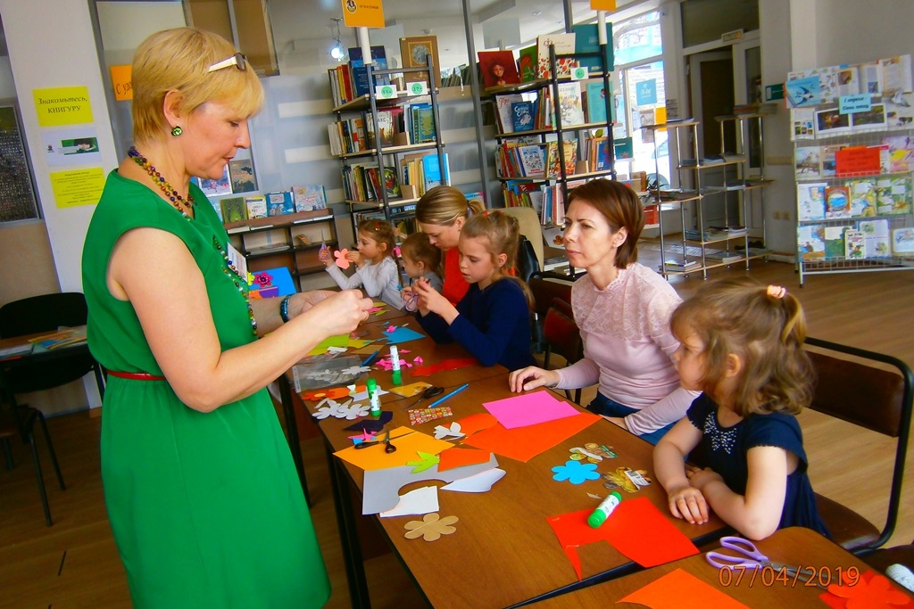 7 апреля, в воскресенье, в Школе маленького затейника в библиотеке № 3 дети вместе с родителями выполняли работу в технике аппликация. Тема мастер-класса — «Горшочек с цветком». В виде аппликации сделали горшочек и симпатичный цветочек, разгадали загадки о цветах. «Поиграли в физкультминутку «Кто в домике живет?».