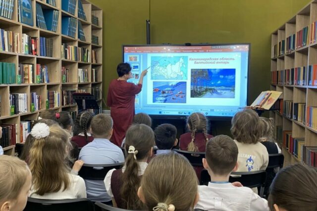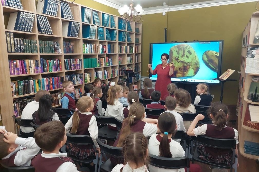 Учащиеся 1 «В» класса МБОУ «СОШ № 22» в библиотеке № 4 (ул. Светланская, 205) стали 15 апреля участниками мероприятия «Калининград – янтарная столица мира», посвященного 80-летию со дня образования Калининградской области, центра мирового янтаря. В регионе сосредоточено около 90% мировых запасов этого солнечного камня. Узнали, как рождается янтарь, что такое инклюзы, как преображается камень в процессе обработки и где используется.