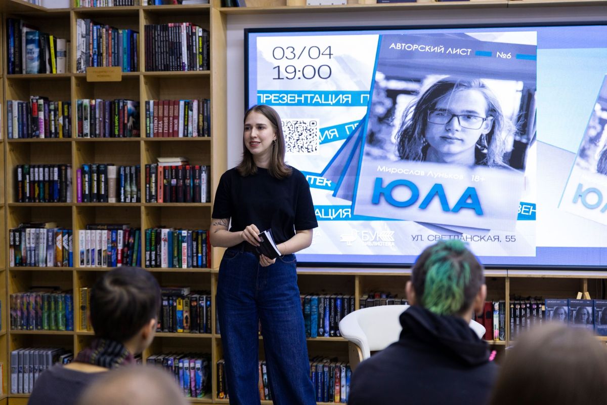 В библиотеке БУК (ул. Светланская, 55) состоялась 3 апреля презентация шестого выпуска серии «Авторский лист издательства «Черемша»» — сборника Мирослава Лунькова «Юла».