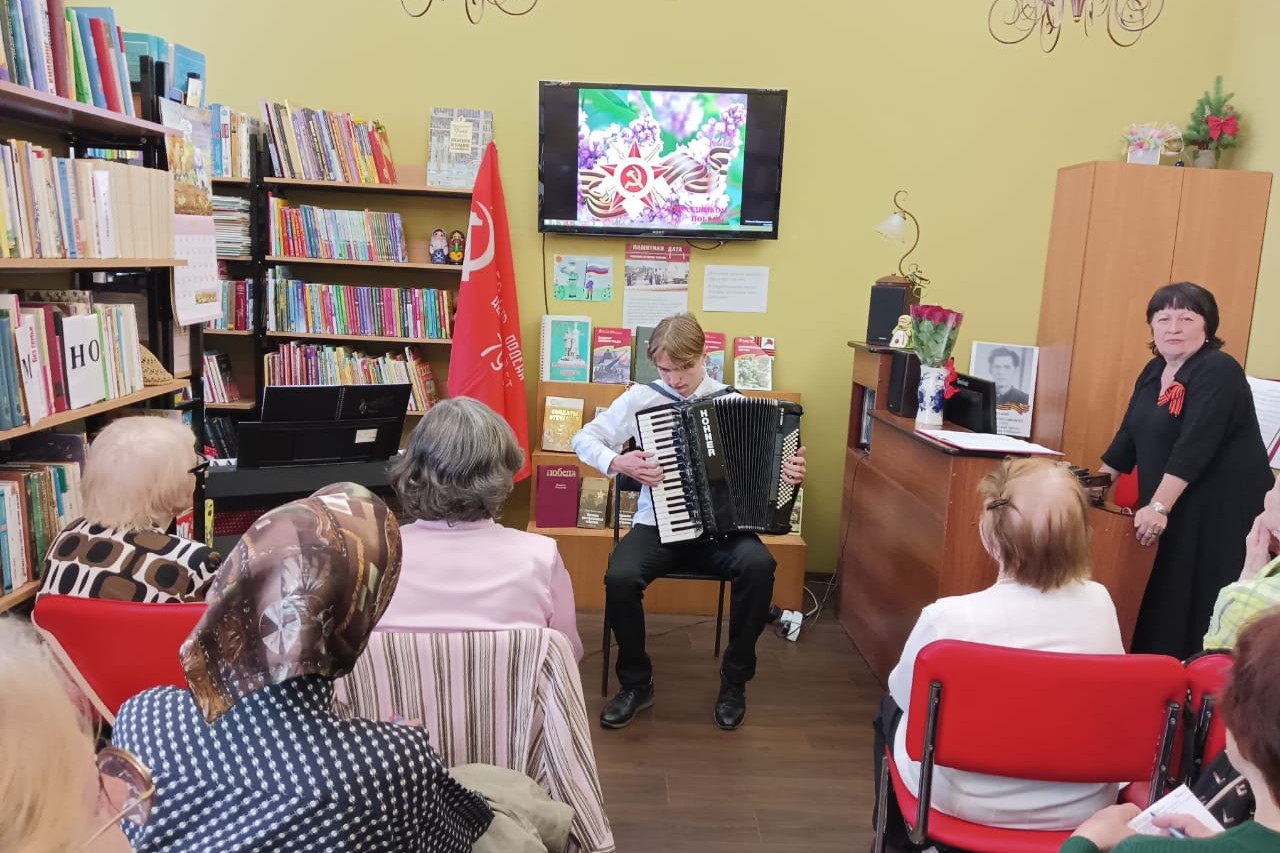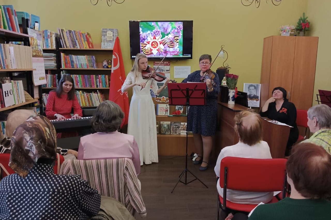 10 мая Детская школа искусств № 8 им. А.В. Воробьёва подарила читателям и слушателям клубного объединения «В мире прекрасного» библиотеки № 4 замечательный праздничный концерт «Лирические песни о войне». В минуты грусти и радости, воспоминаний о доме, фронтовых товарищах, любимых- душа просила песни, помогала выстоять и победить.