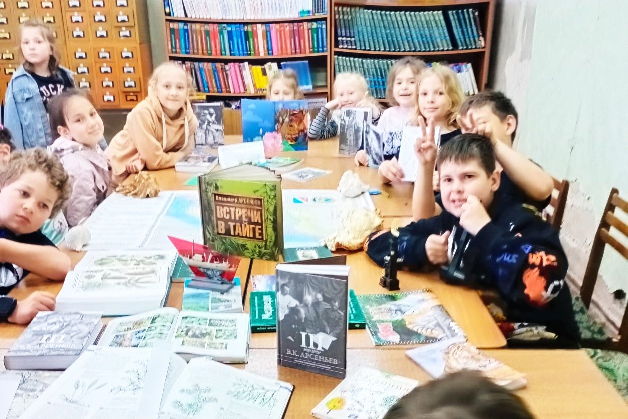 Дети узнали интересные факты биографии писателя. Ведь он изучал наш край 30 лет, исходил его вдаль и поперёк, плавал на лодках по горным, порожистым рекам. Все его путешествия были полны опасностей. Он вёл дневники своих путешествий, которые впоследствии легли в основу его удивительно интересных книг. Книга «В дебрях Уссурийского края» завоевала всеобщую известность. Ведь герой этой книги Дерсу Узала был незаменимым проводником Арсеньева, который вёл его непроходимыми тропами, помогая лучше узнать и исследовать Уссурийскую тайгу.