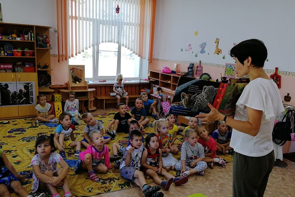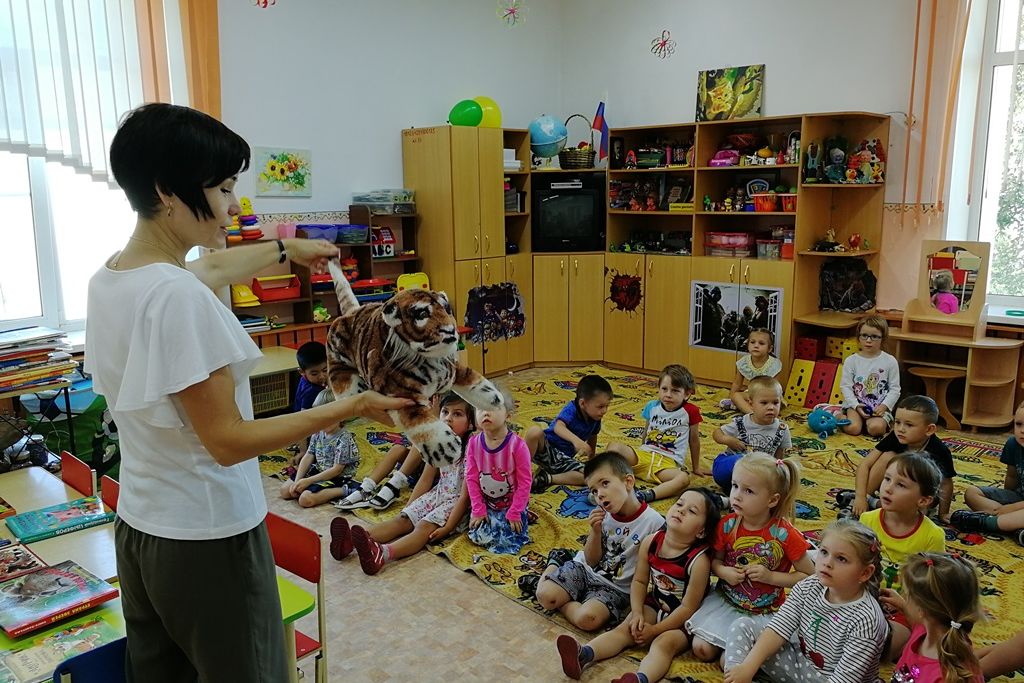 Ребята из детского сада проявили интерес к обитателям Уссурийской тайги и, особенно, амурскому тигру. Познавательный час «В гости к тигру» состоялся в детском саду № 55, правда, тигр — в виде игрушки — сам пришел в гости к детворе. Познавательные и художественные книги о тиграх и других диких кошках вызвали восторг и интерес у детей. Ребята познакомились с книгой-вырубкой, книгой-панорамой с объемными изображениями и «настоящими» глазами. Ребята с удовольствием прослушали сказку Дональда Биссета «Про тигренка Бинки, у которого пропали полоски», сказку Владимира Подмаскина и Ирины Киреевой «Как кошка тигра охотиться научила», написанную в стиле сказаний коренных народов Приморья.